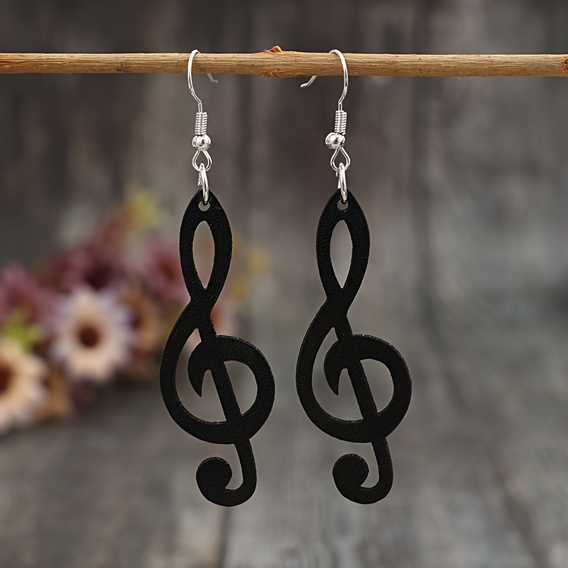 Black PU leather music note earrings - retro style treble key hook earrings for ladies, perfect for parties, music festivals and Halloween, funky earrings