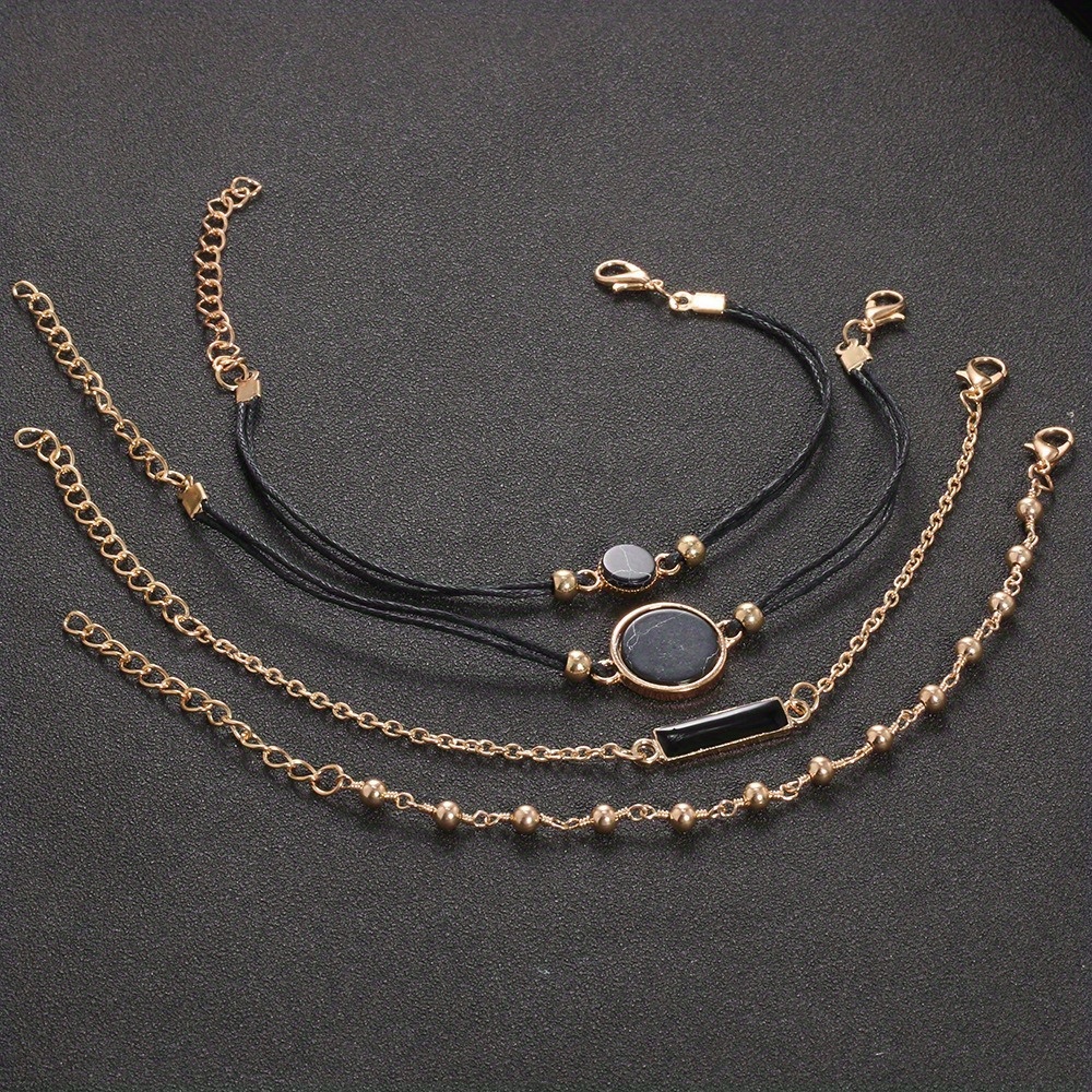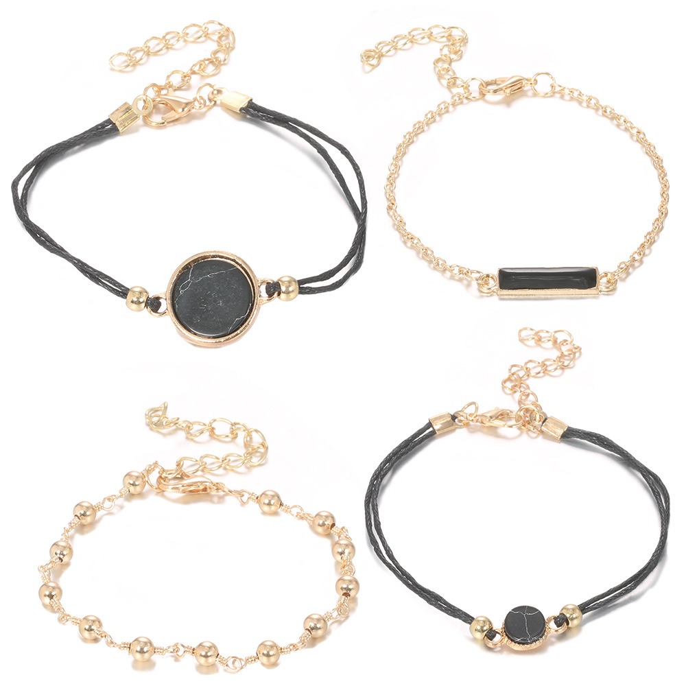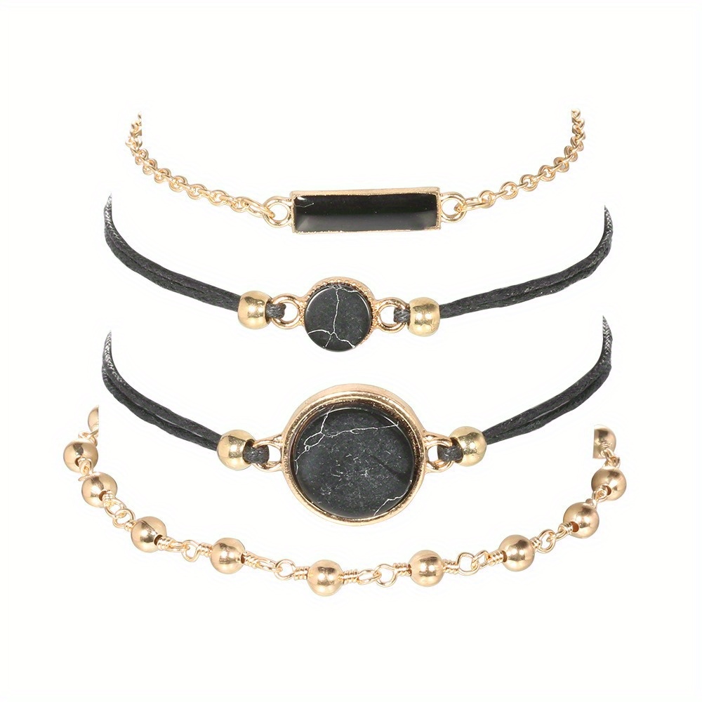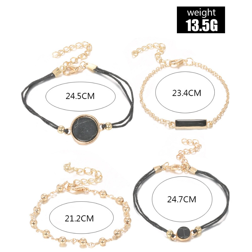 Black Turquoise Pattern European and American Style 4-piece Set, Jewelry Handmade Chain, Black Square Trend Bracelet