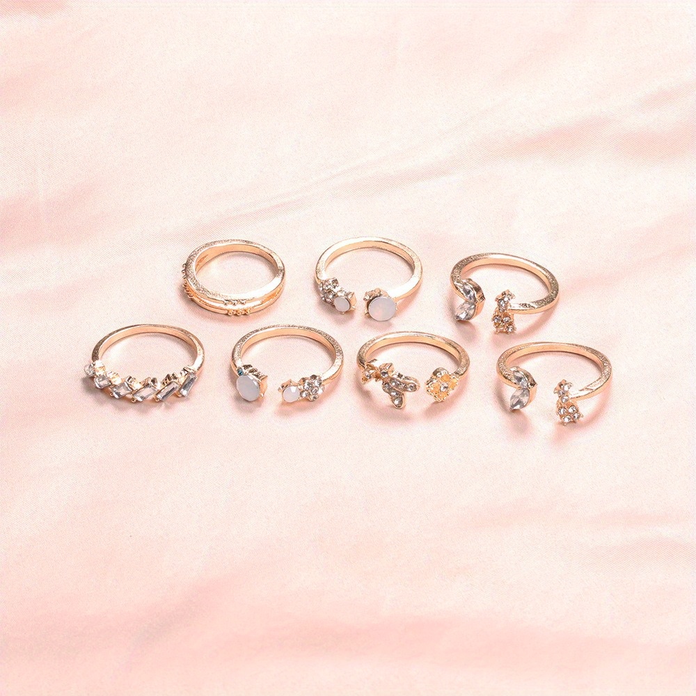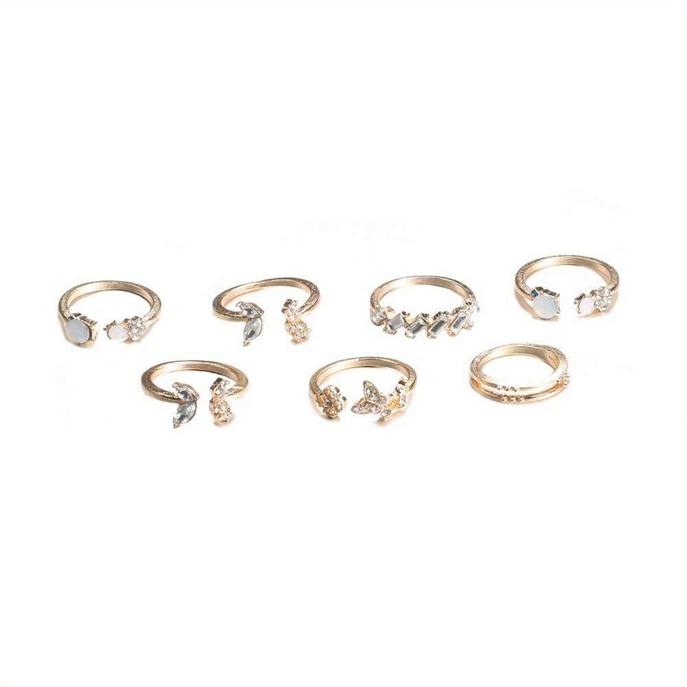 Bohemian 7-Piece Diamond Butterfly Flower Set Ring, Women's Vintage Wedding Festival Crystal Ring