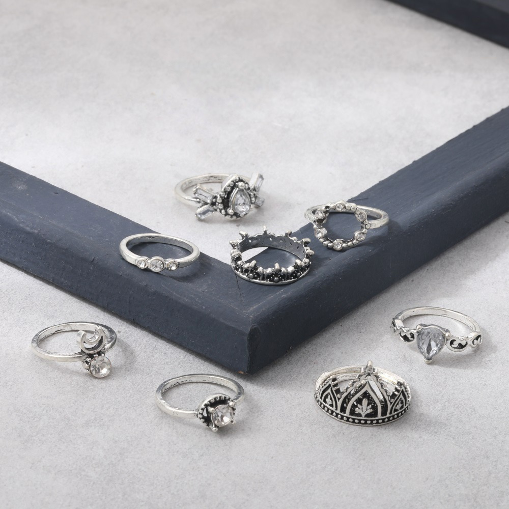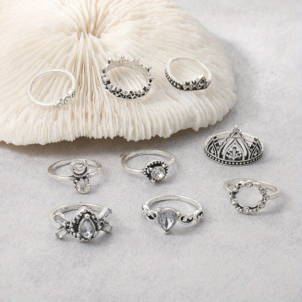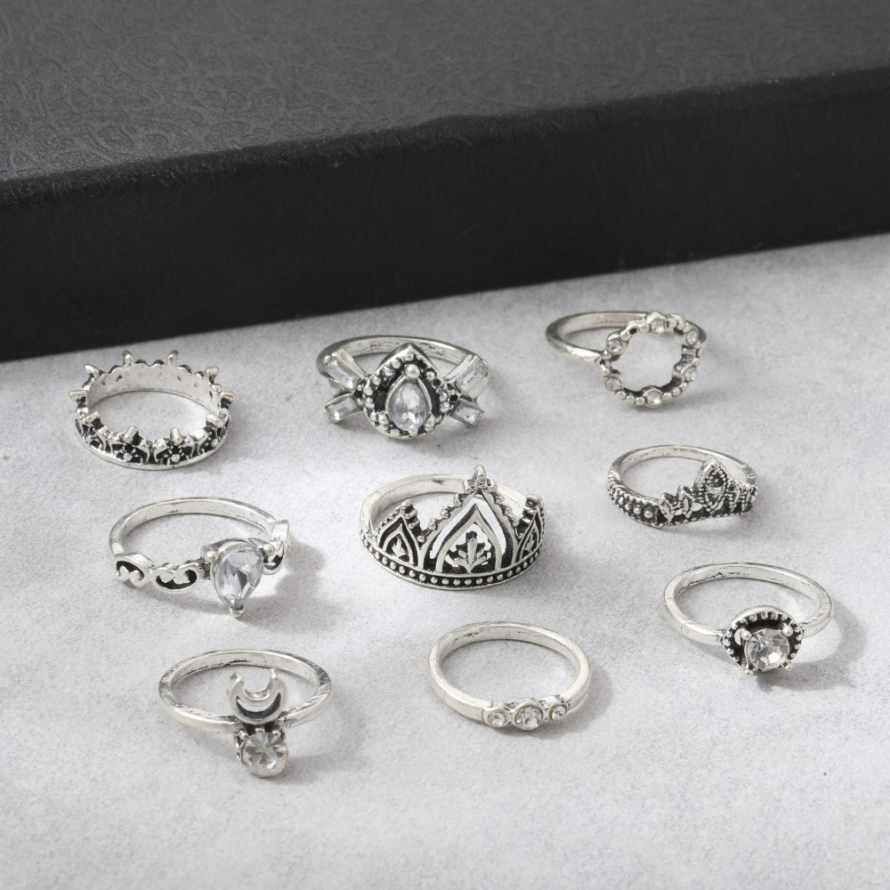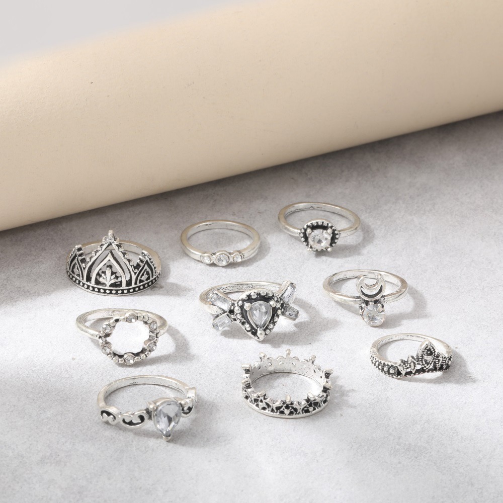 Bohemian 9-piece set with diamond crescent crown combination ring