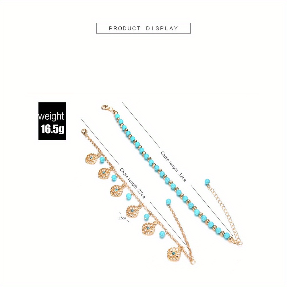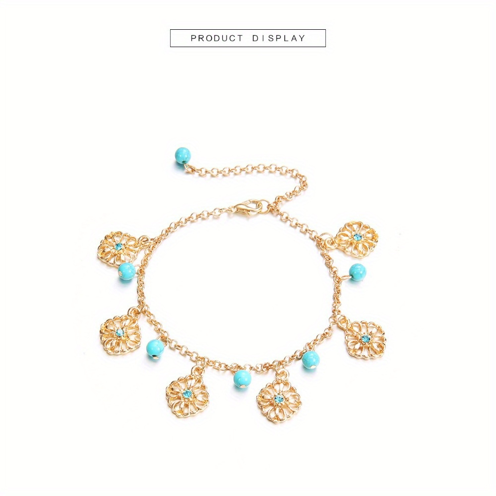 Bohemian Anklet Turquoise Beaded Blue Diamond Flower Plate Fringed Anklet