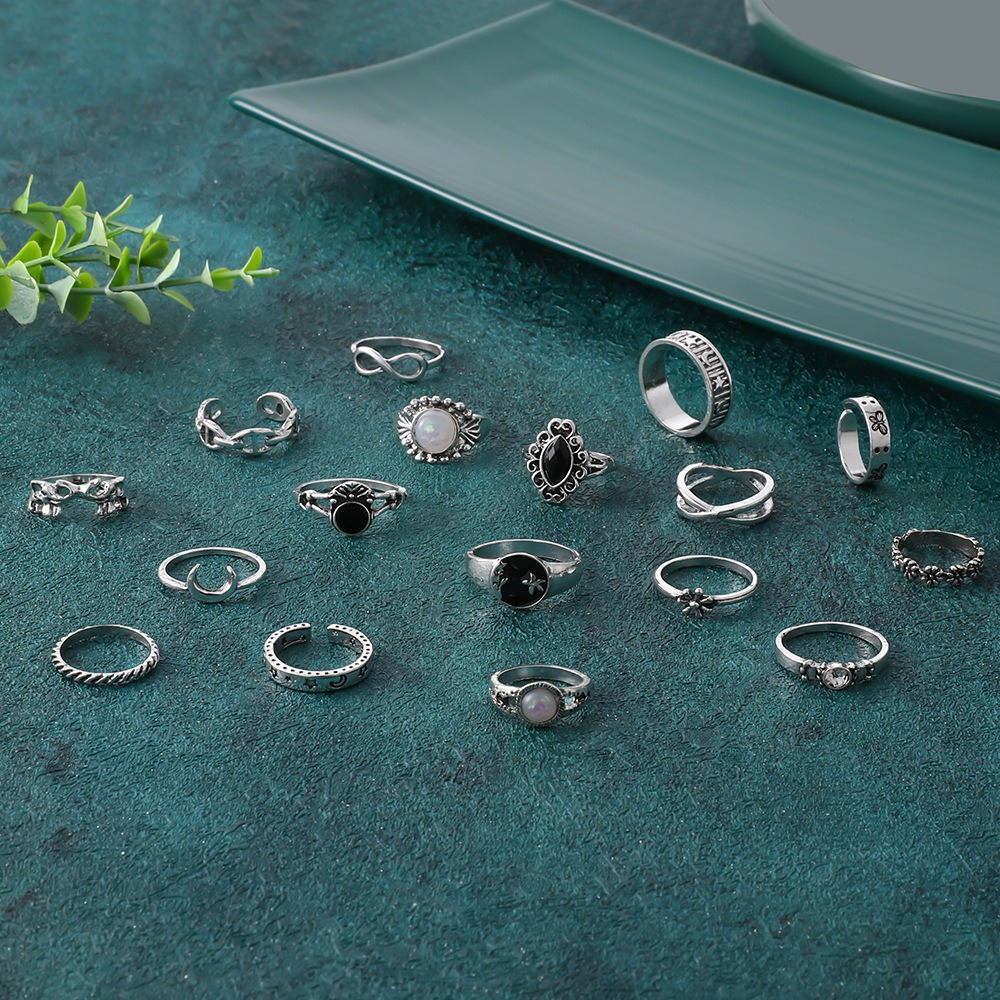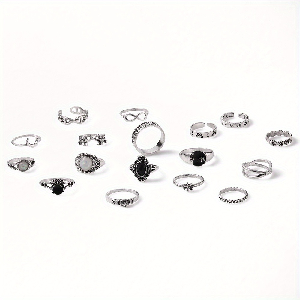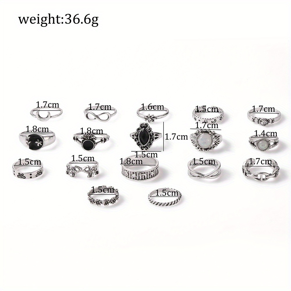 Bohemian Black Diamond Moon and Stars Cross Set 17-piece Ring Set