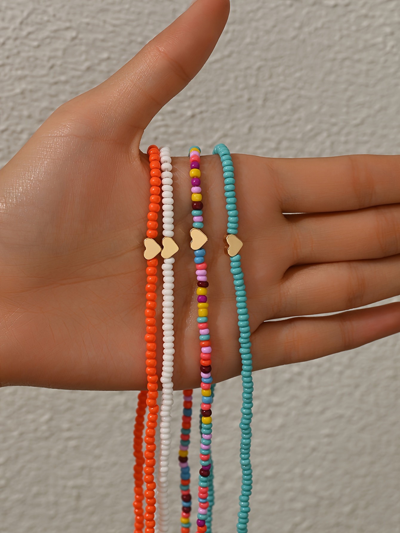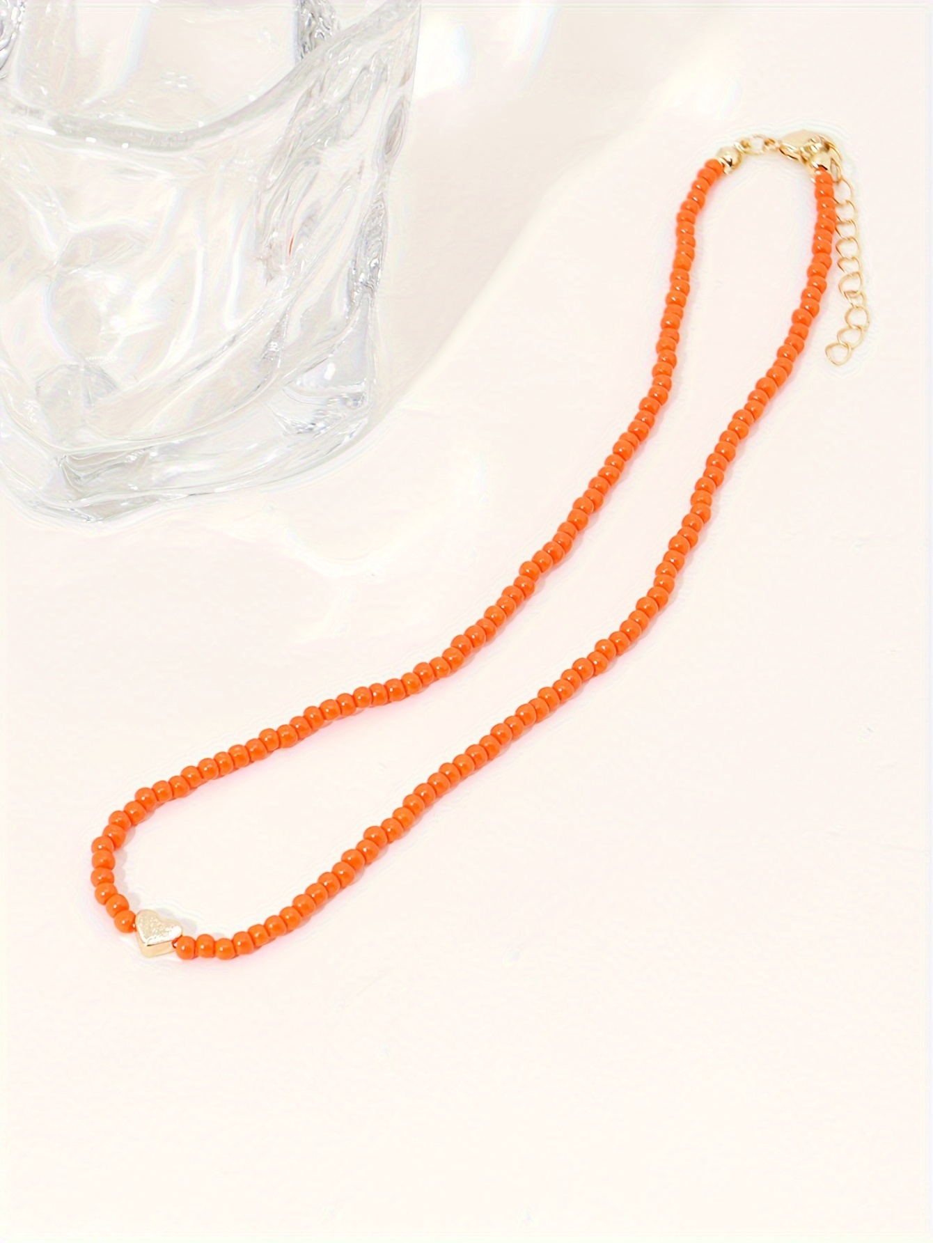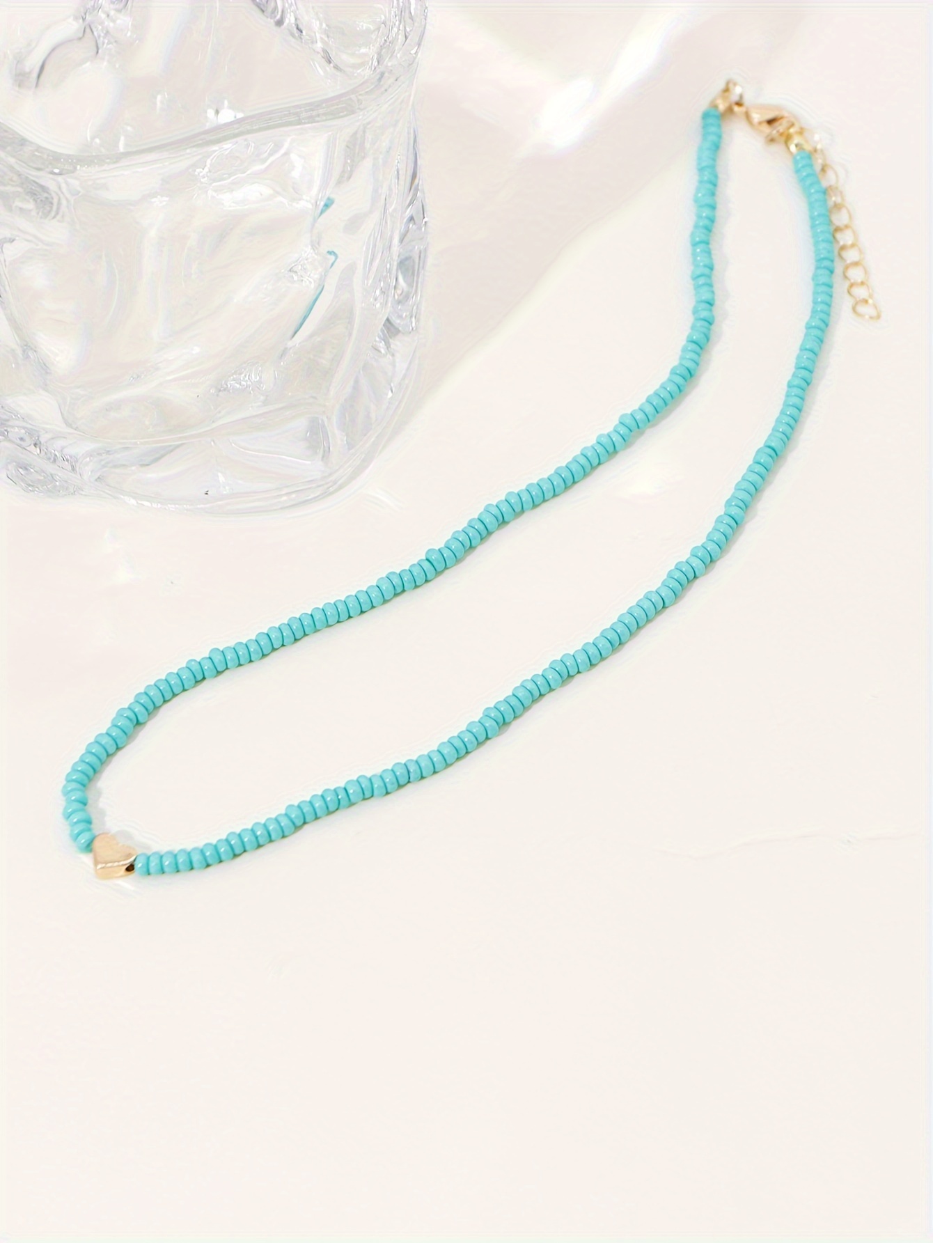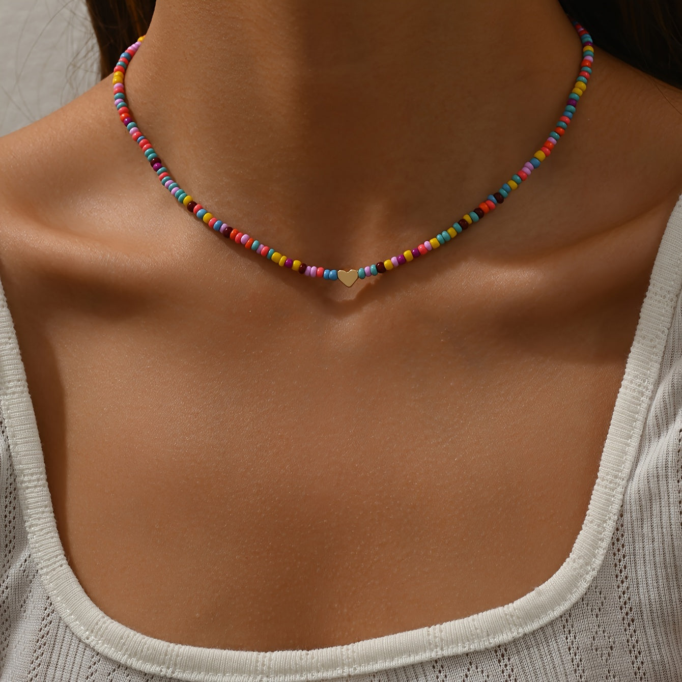 Bohemian Handmade Beaded Heart Women's Necklace, Stylish Vacation and Party Accessories