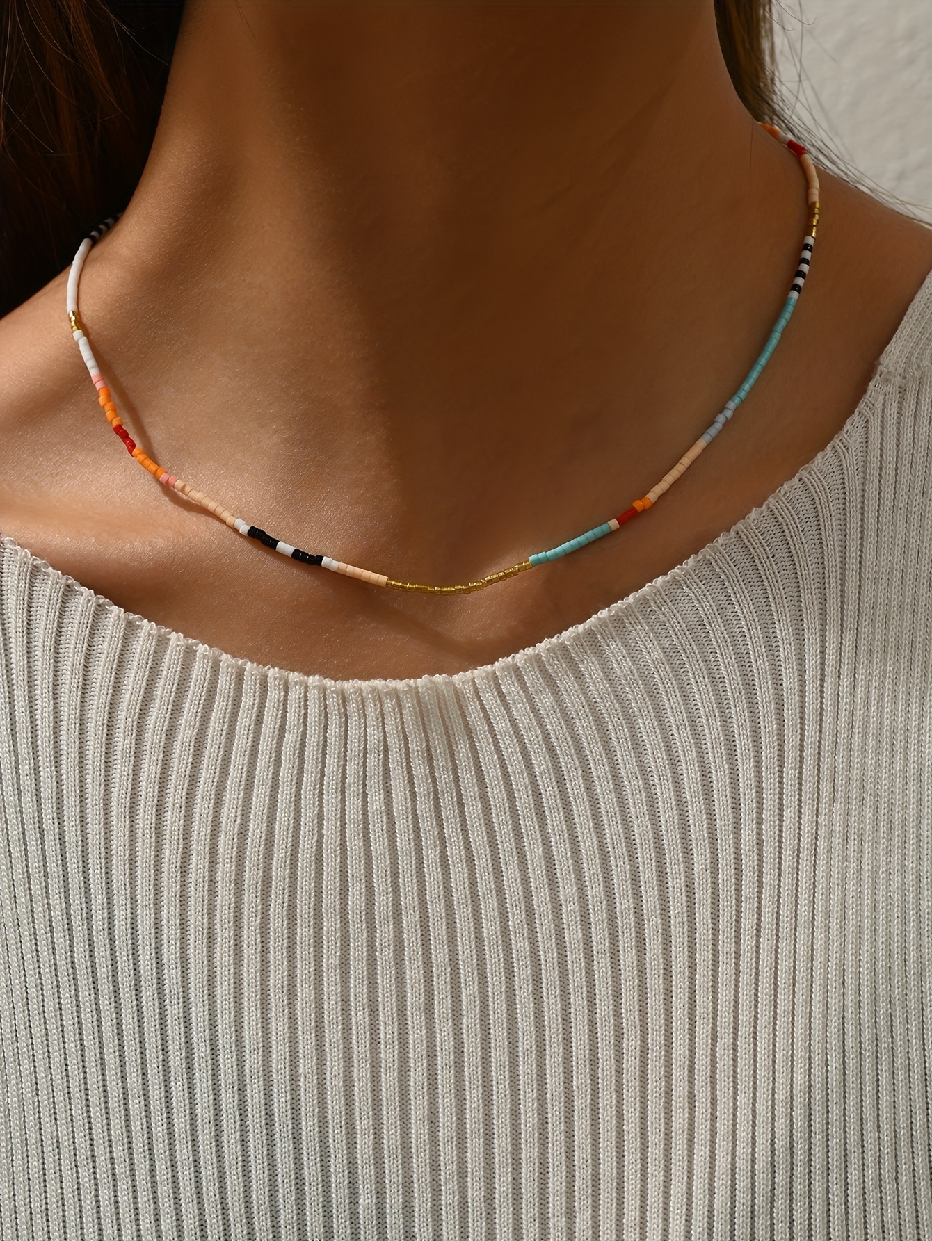 Bohemian handmade colorful bead necklace with stainless steel clasp - perfect for beach vacations and casual dresses