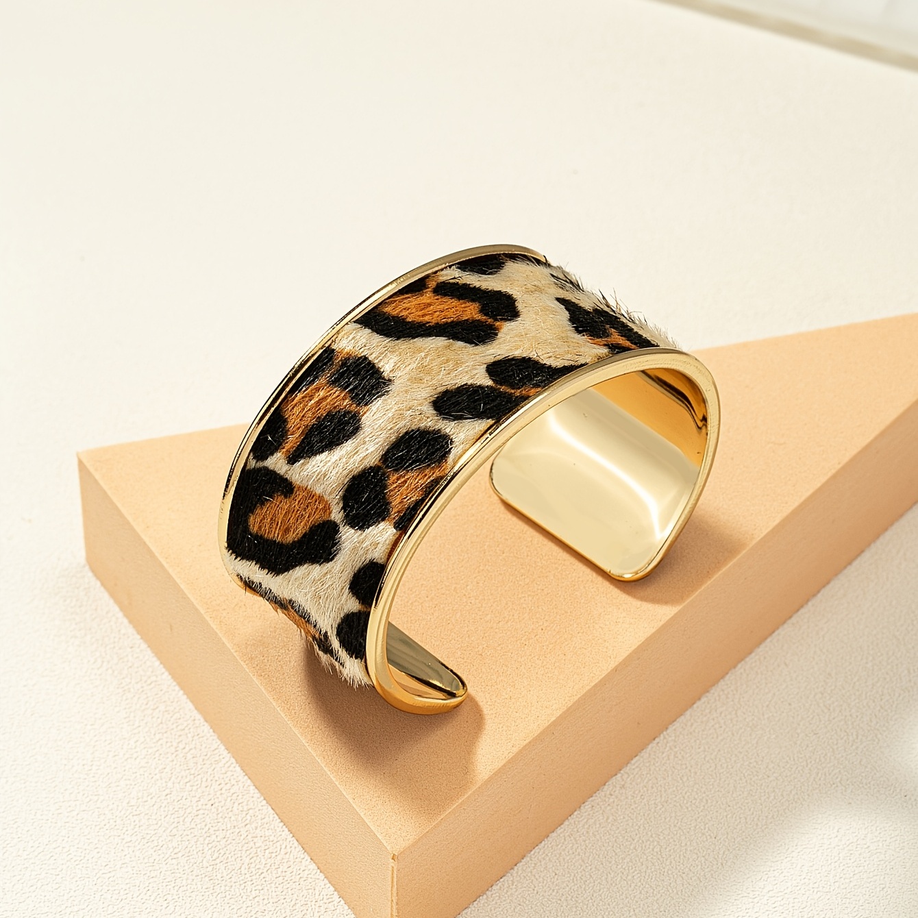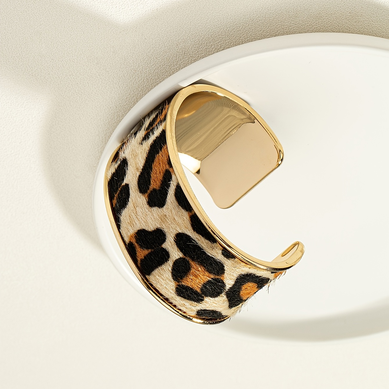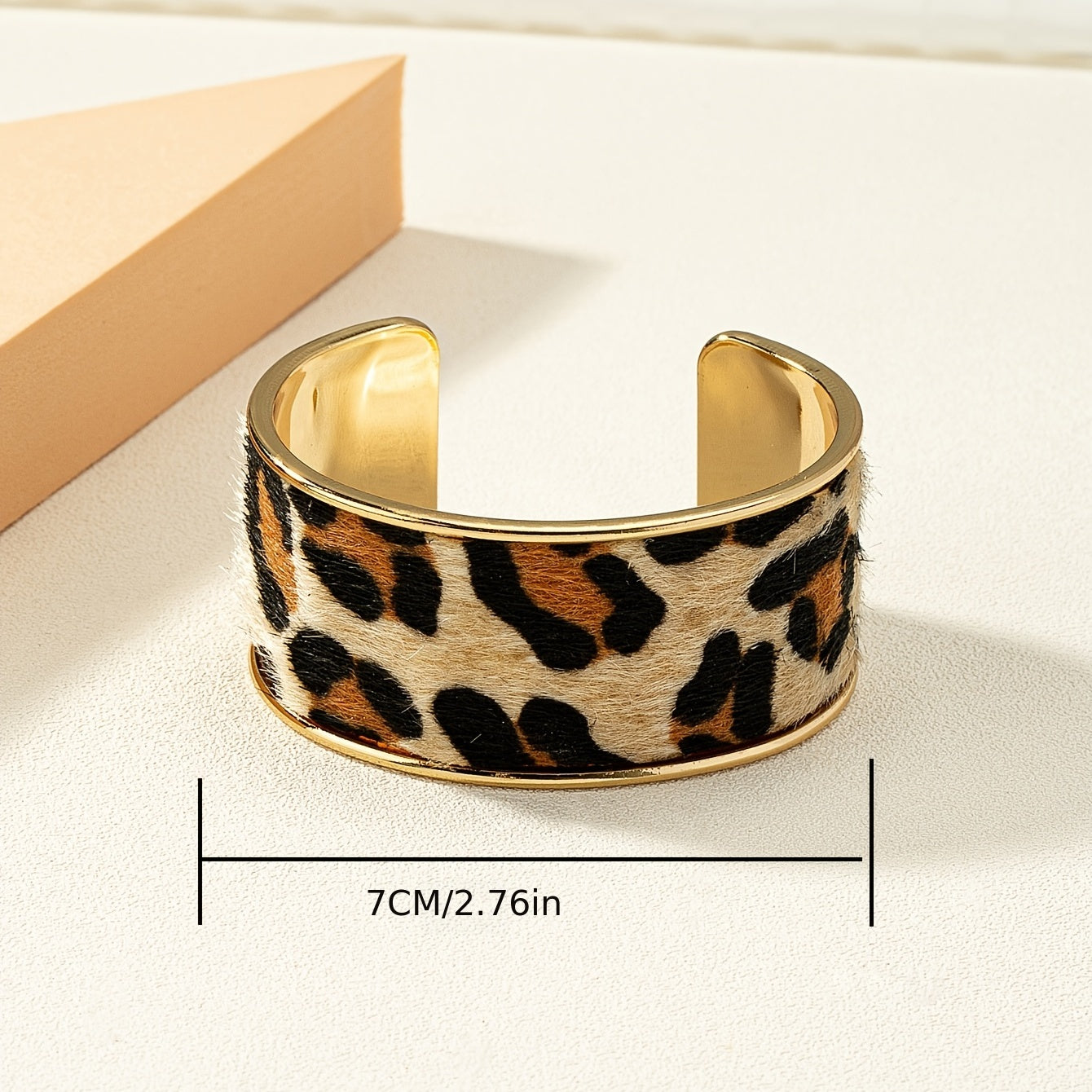 Bohemian luxury 14K gold-plated leopard print open bracelet, adjustable alloy bracelet, suitable for daily and party wear, fashion jewelry for all seasons