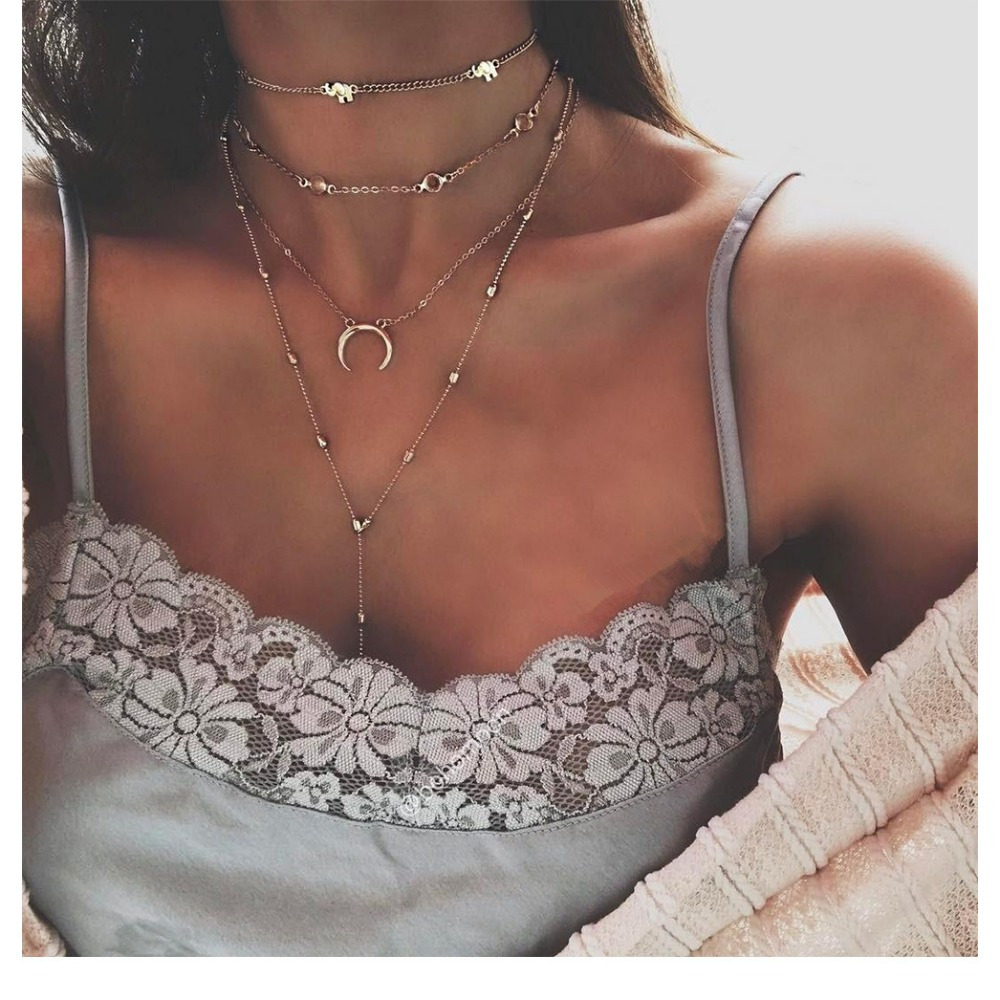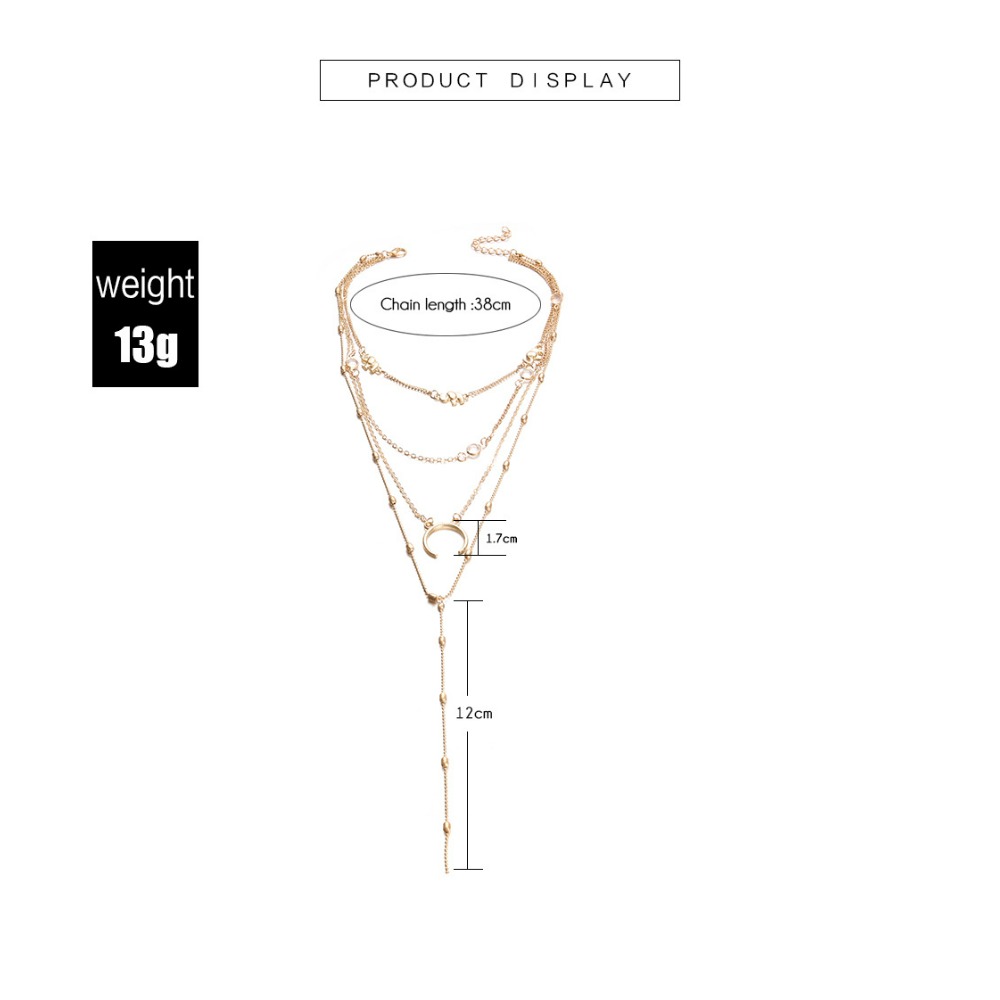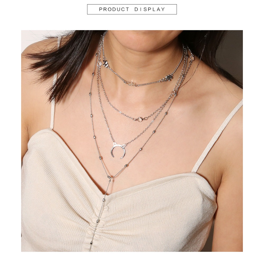 Bohemian Moon Pendant Multi-layer Handmade Necklace Set,