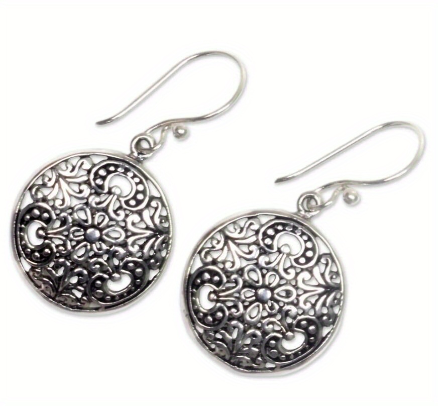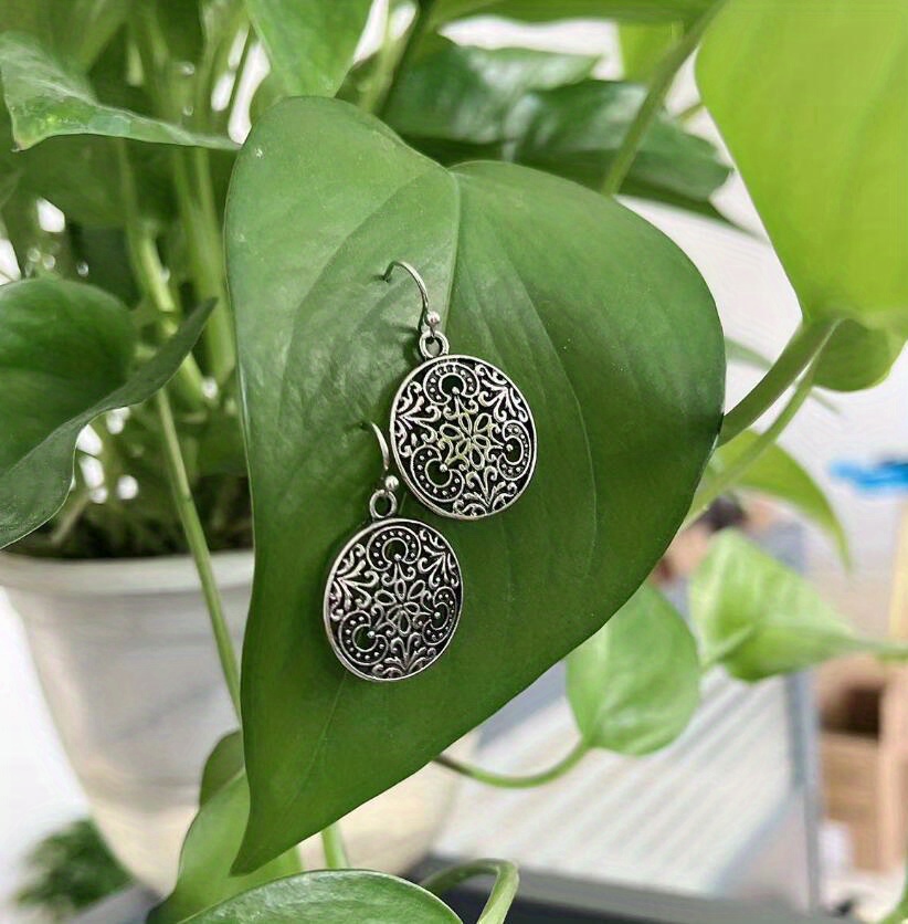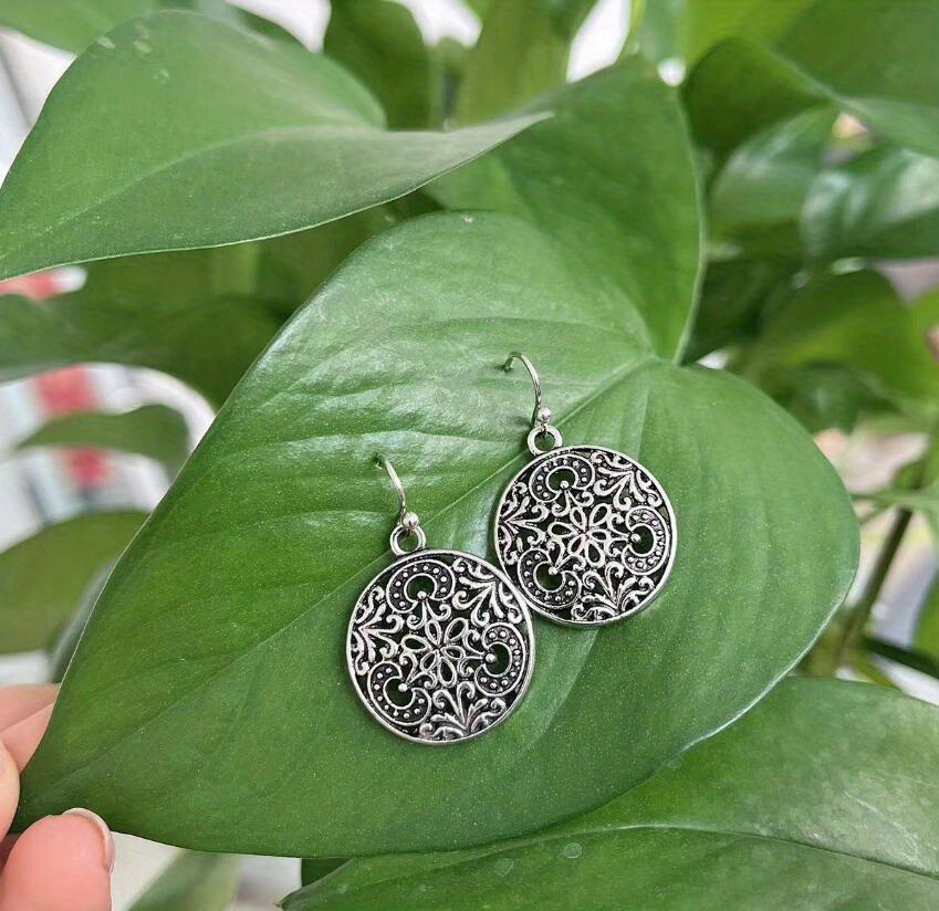 Bohemian Retro Silver Plated Floral Pendant Earrings - Alloy, Iron Stud Earrings for Casual Wear
