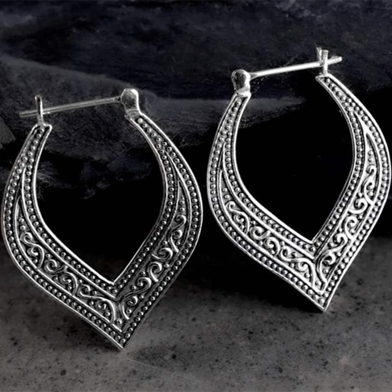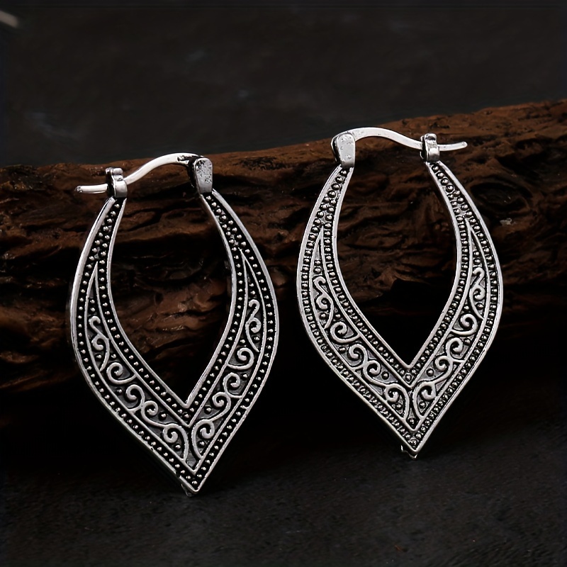Bohemian Retro Square Engraved Earrings - Silver Galvanized Alloy, Ladies Fashion Hook Design
