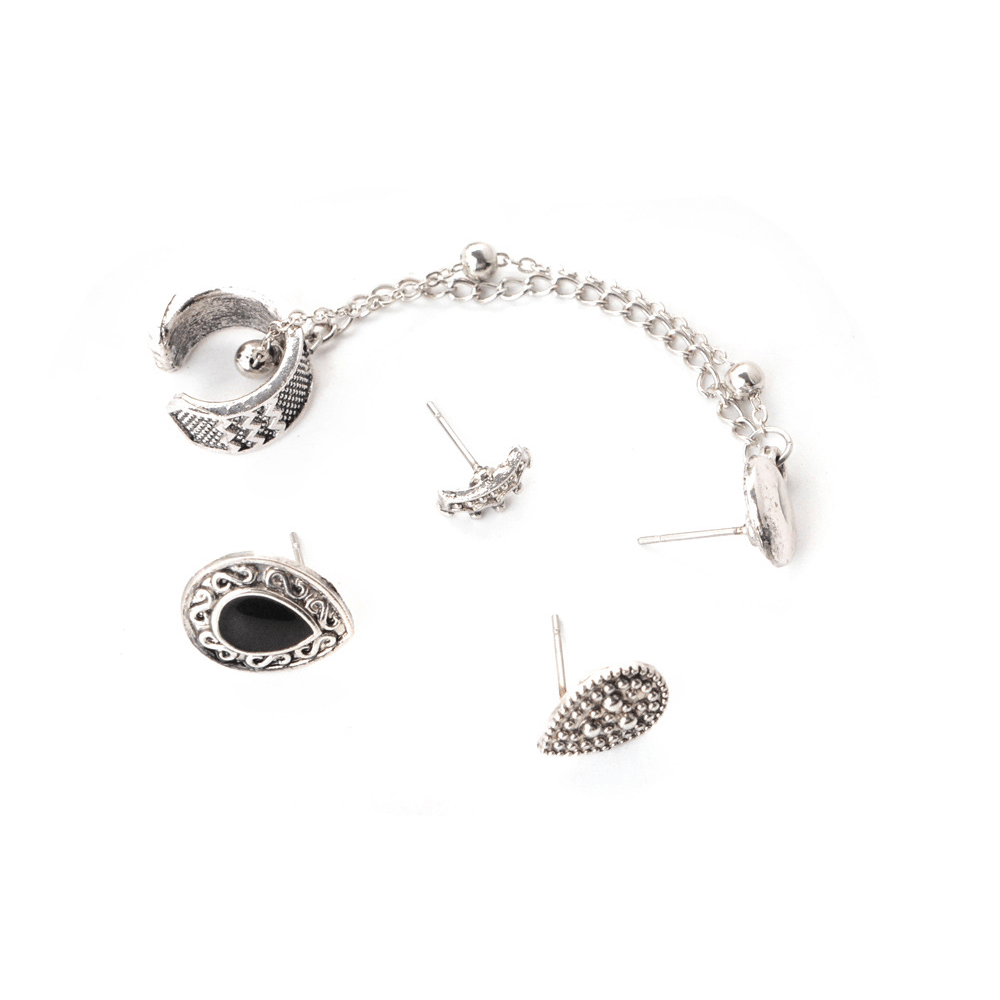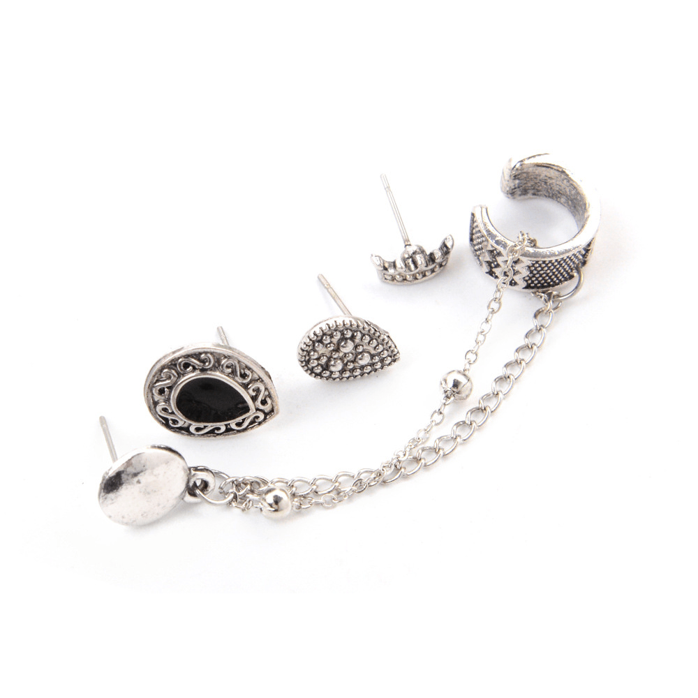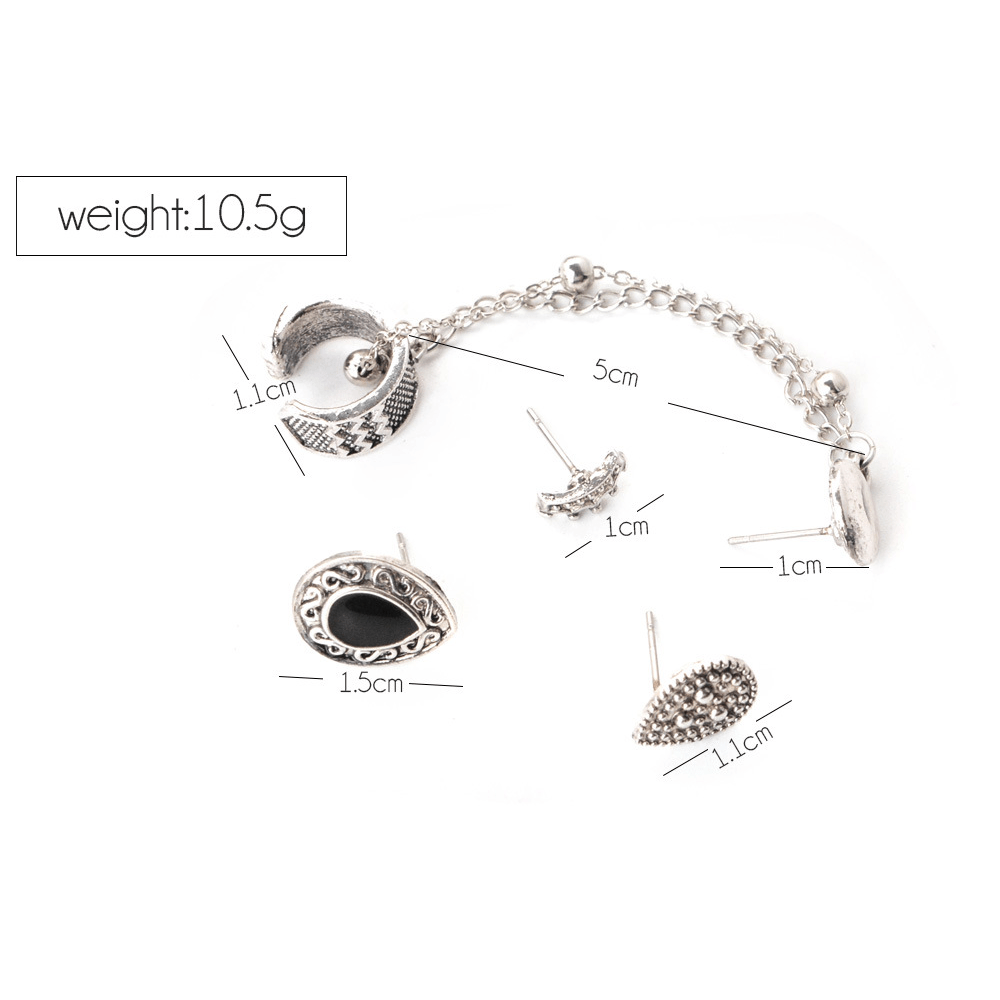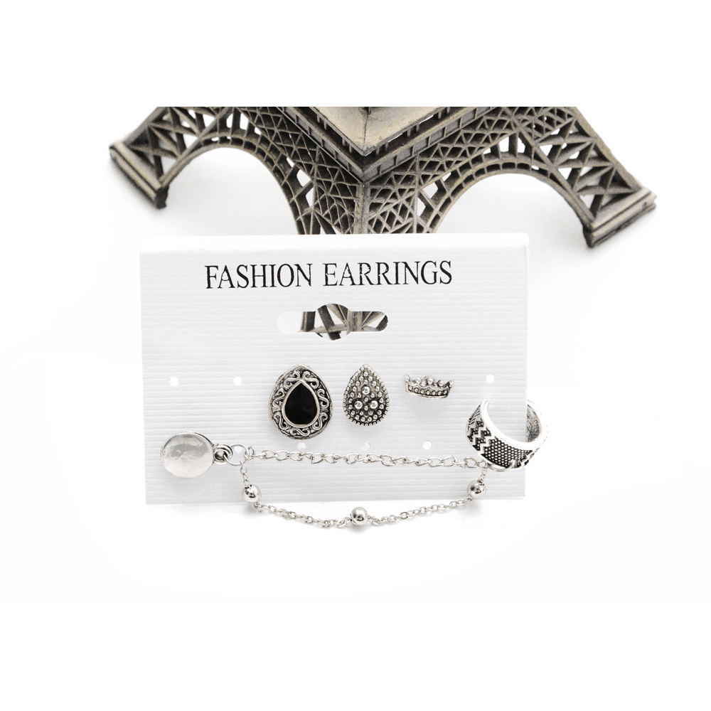Bohemian Retro Style Crown Water Drop Chain 4-piece Combination Set Stud Earrings