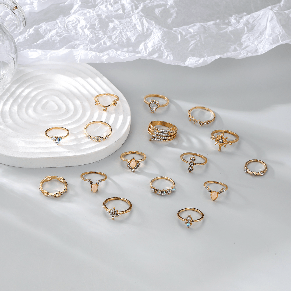 Bohemian Ring 16-piece Diamond Set Ring Jewelry Daily Wear Party Gift