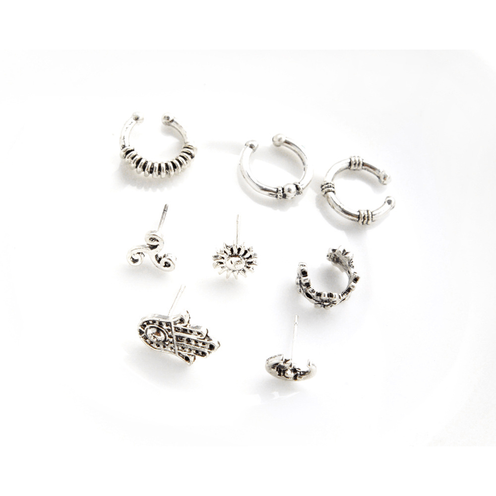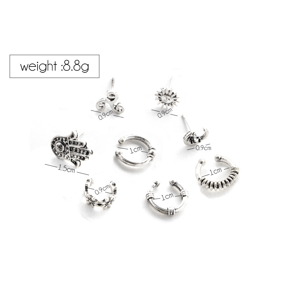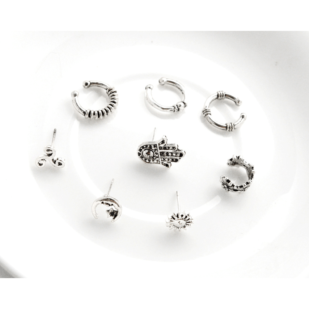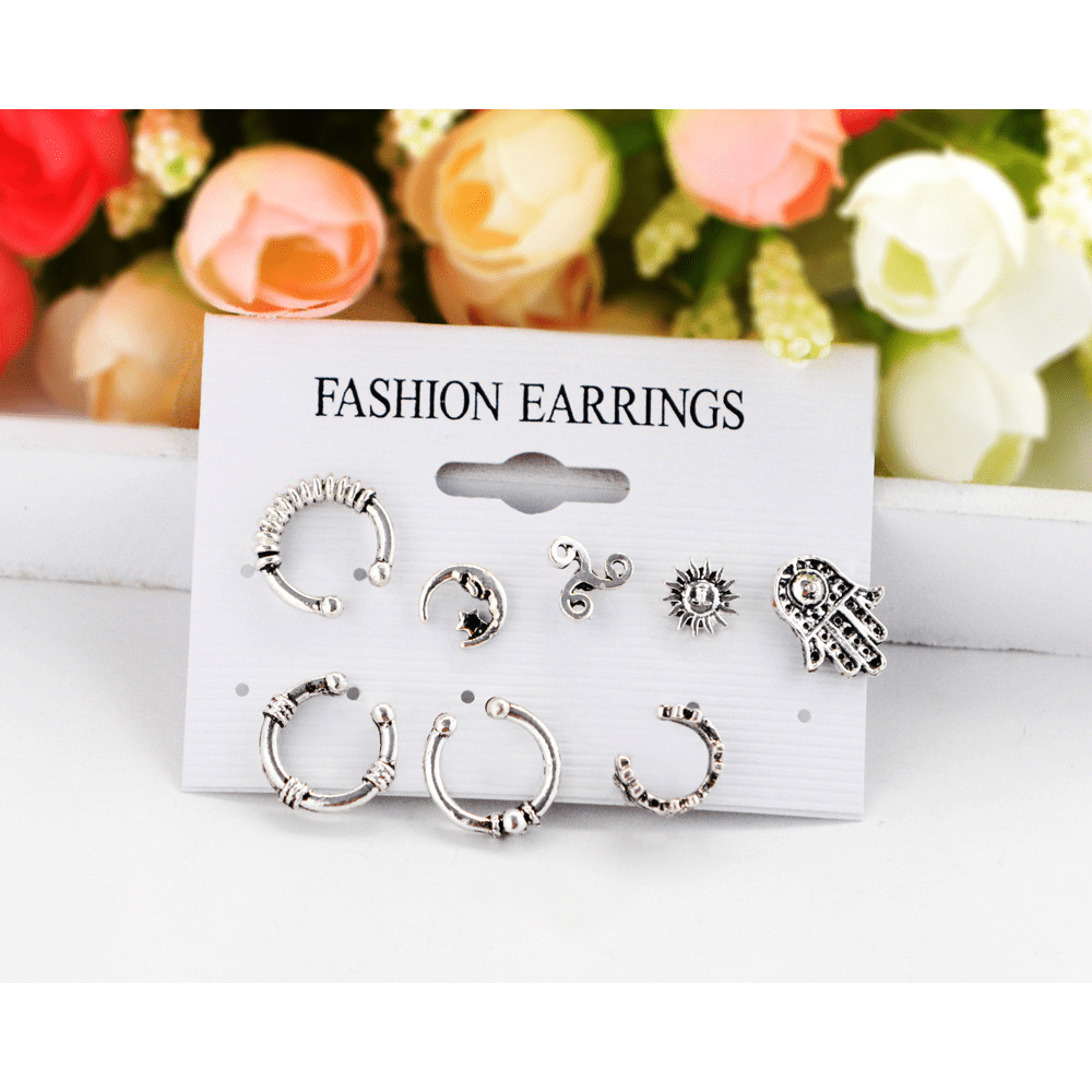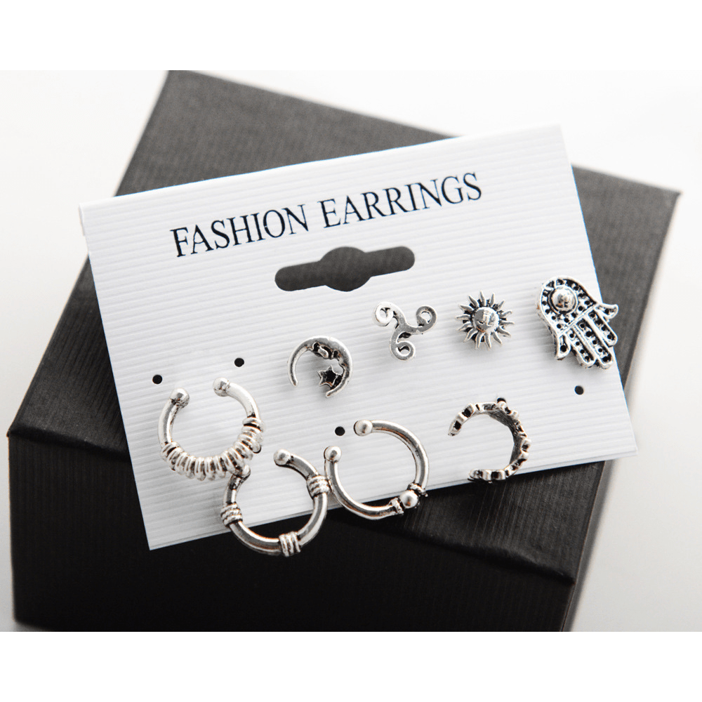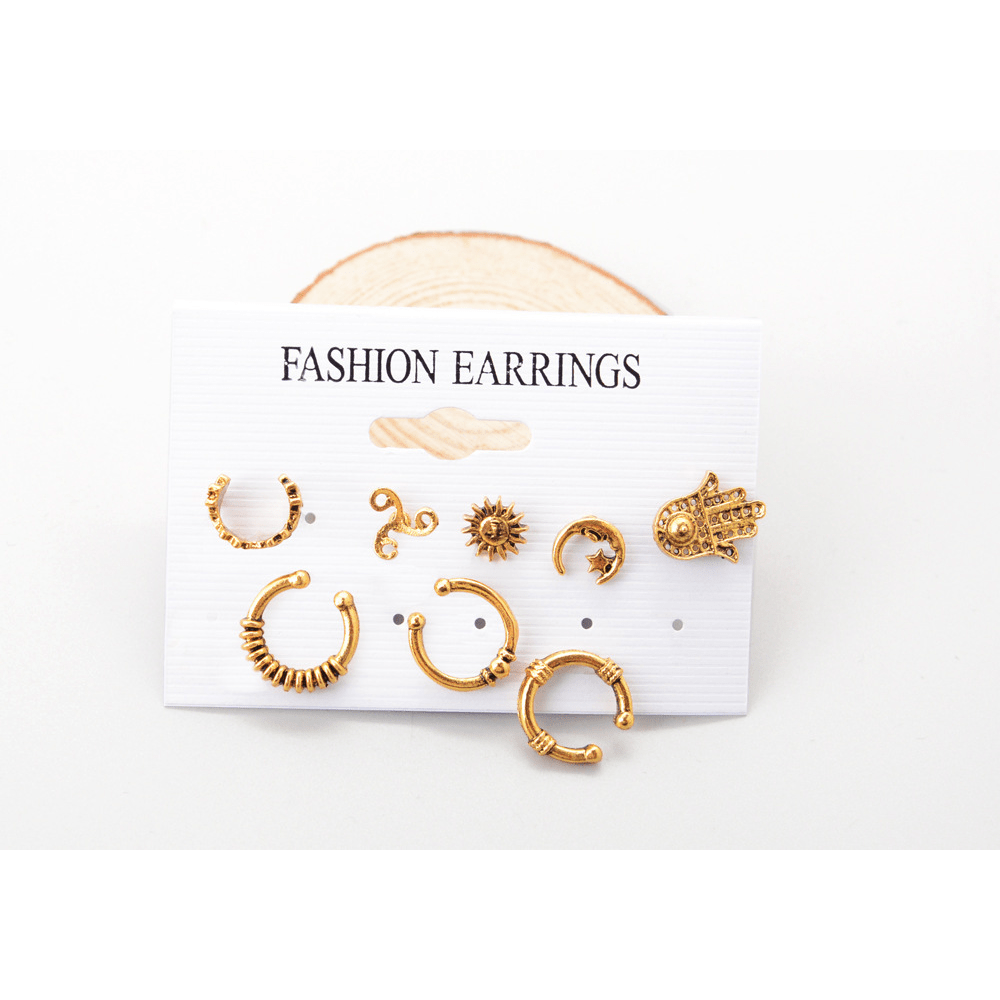 Bohemian Vintage Sun Moon Earrings Earrings Eight Piece Stud Earrings