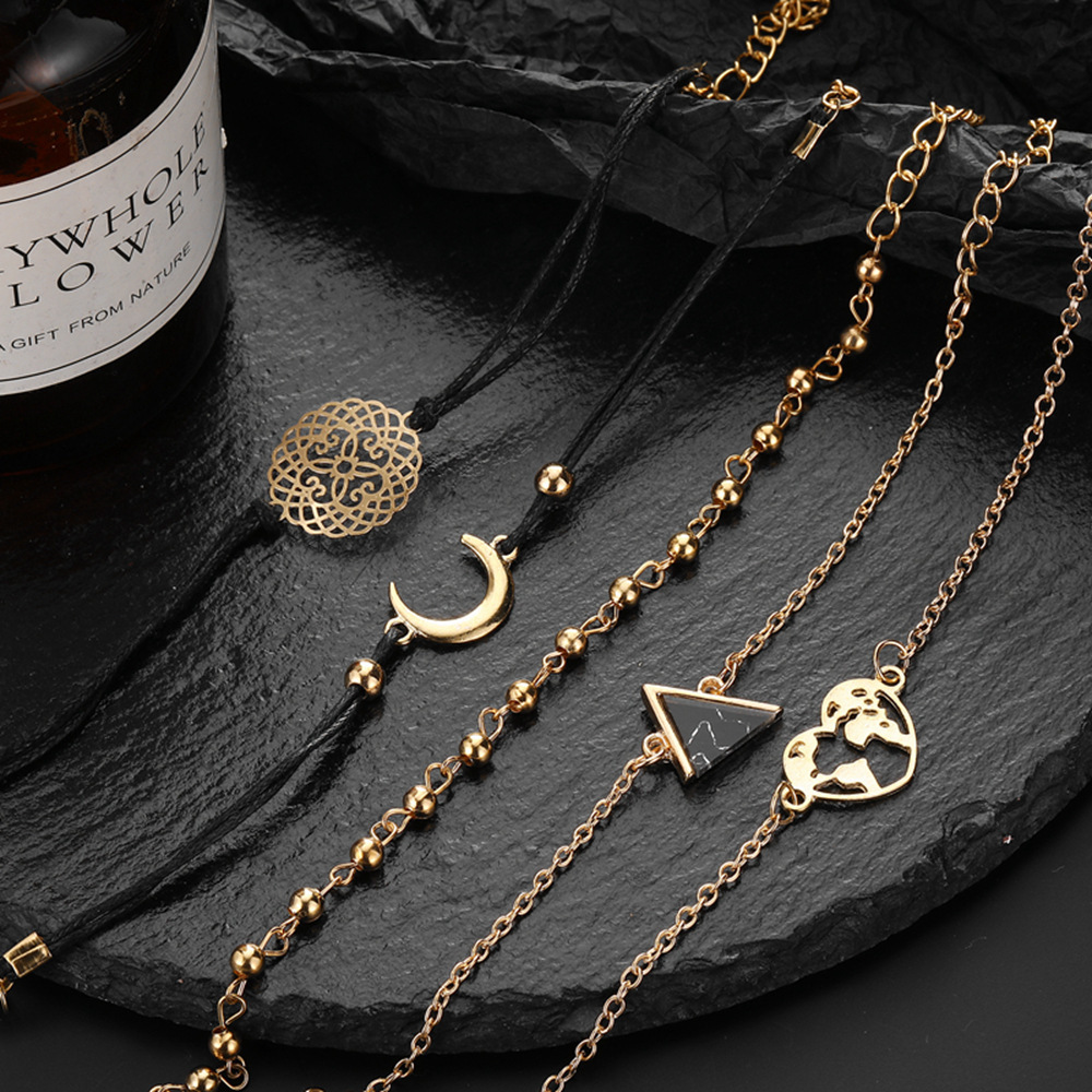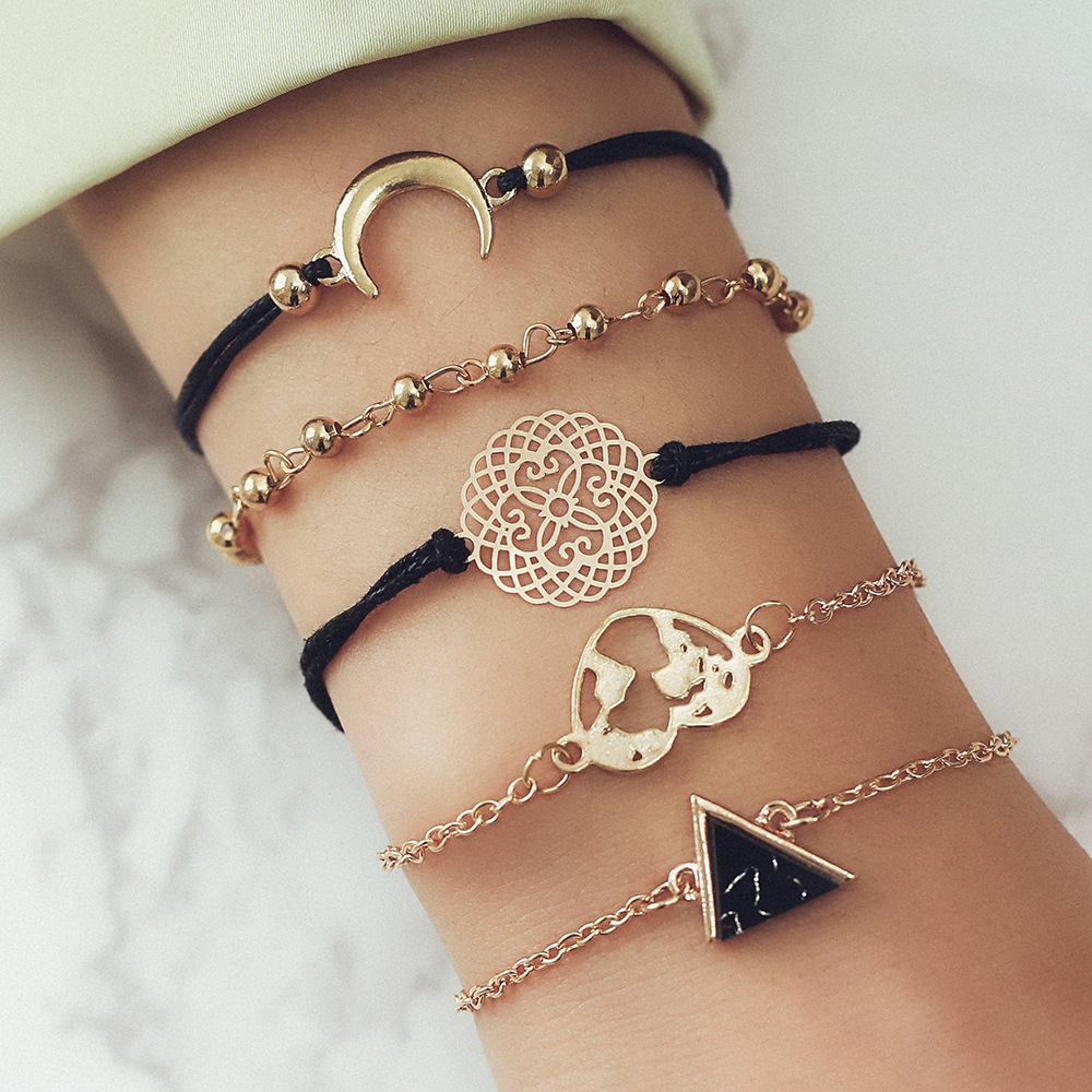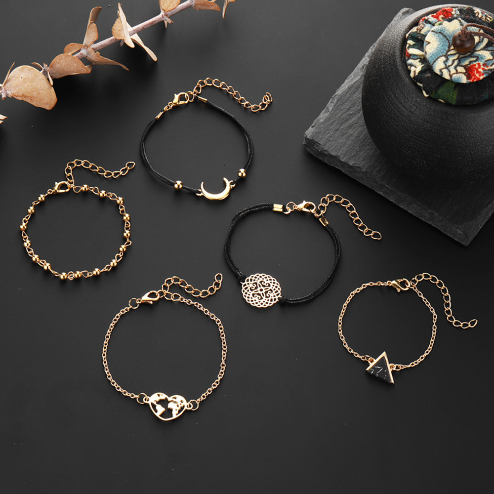 Bracelet Street Shoot Triangle Black Turquoise Alloy Moon Bracelet Five-piece Set