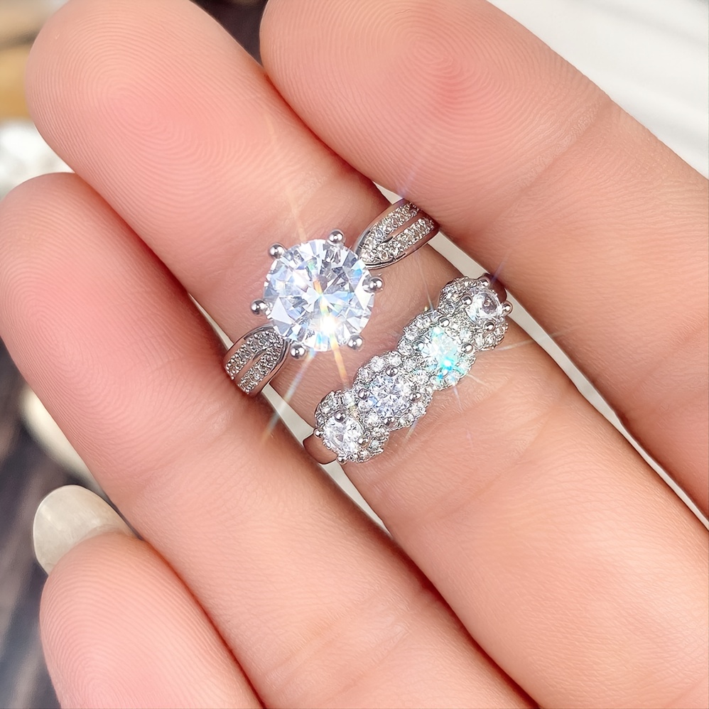 Bridal engagement wedding ring 2 pieces/set, silver and white zircon ring, women's proposal gift jewelry.