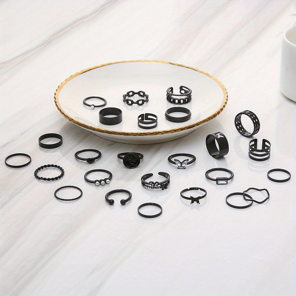 Butterfly Pearl Diamond Personalized Hollow Pattern 25-piece Set Index Finger Tail Ring