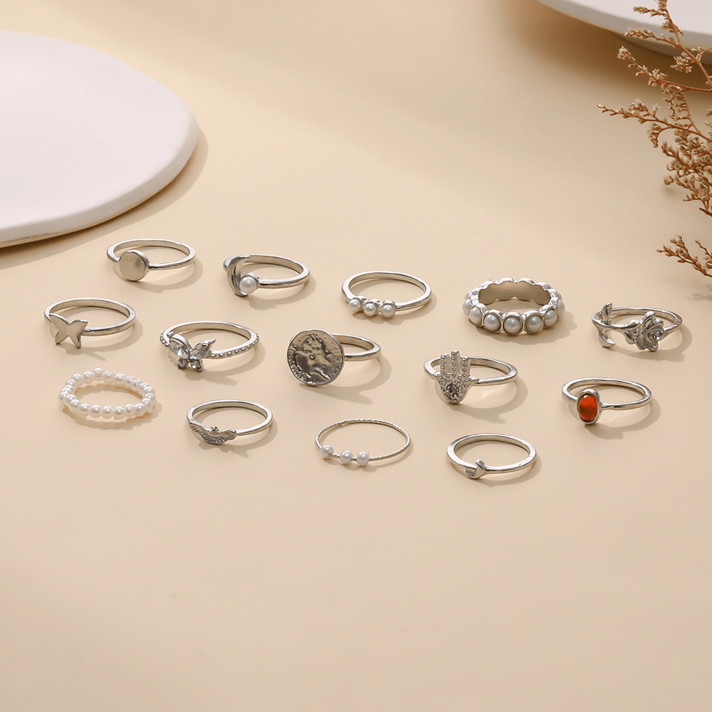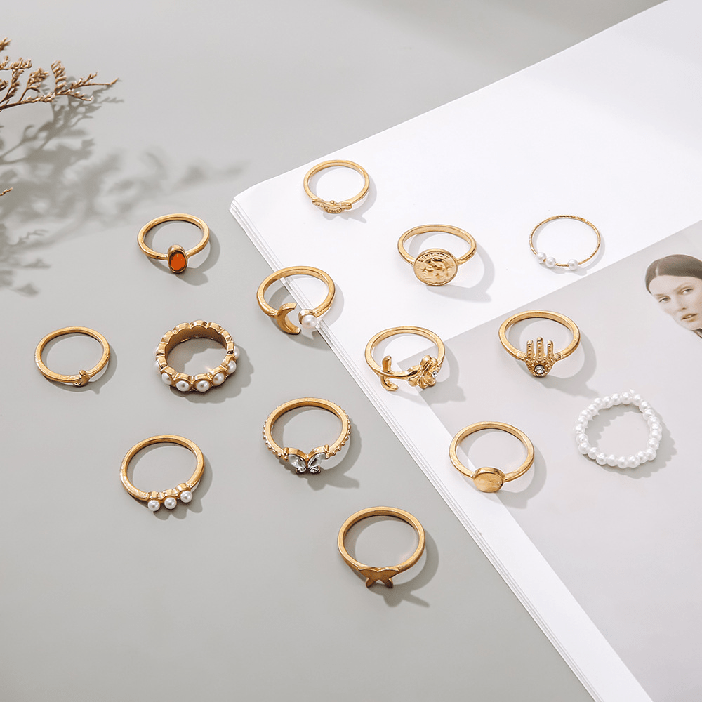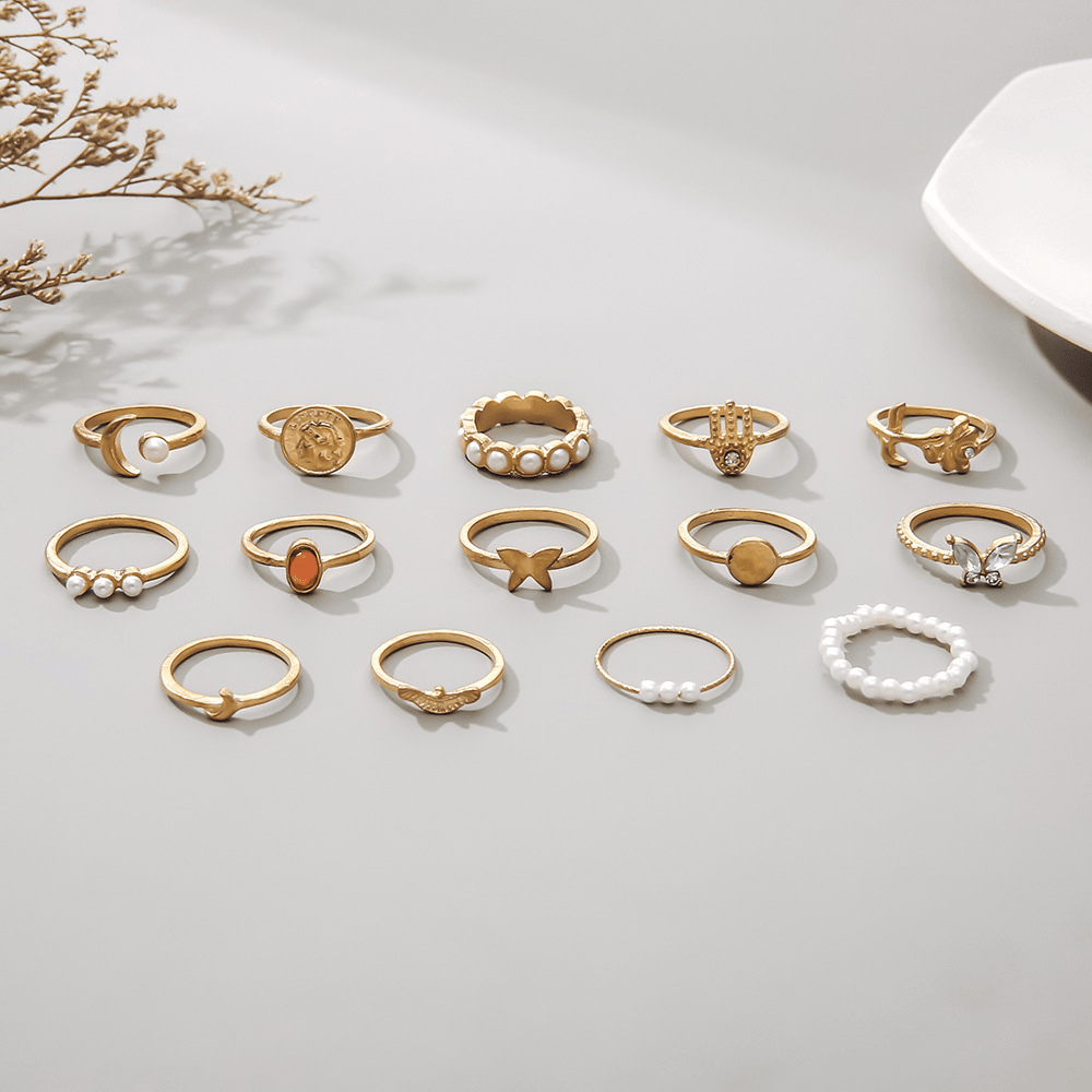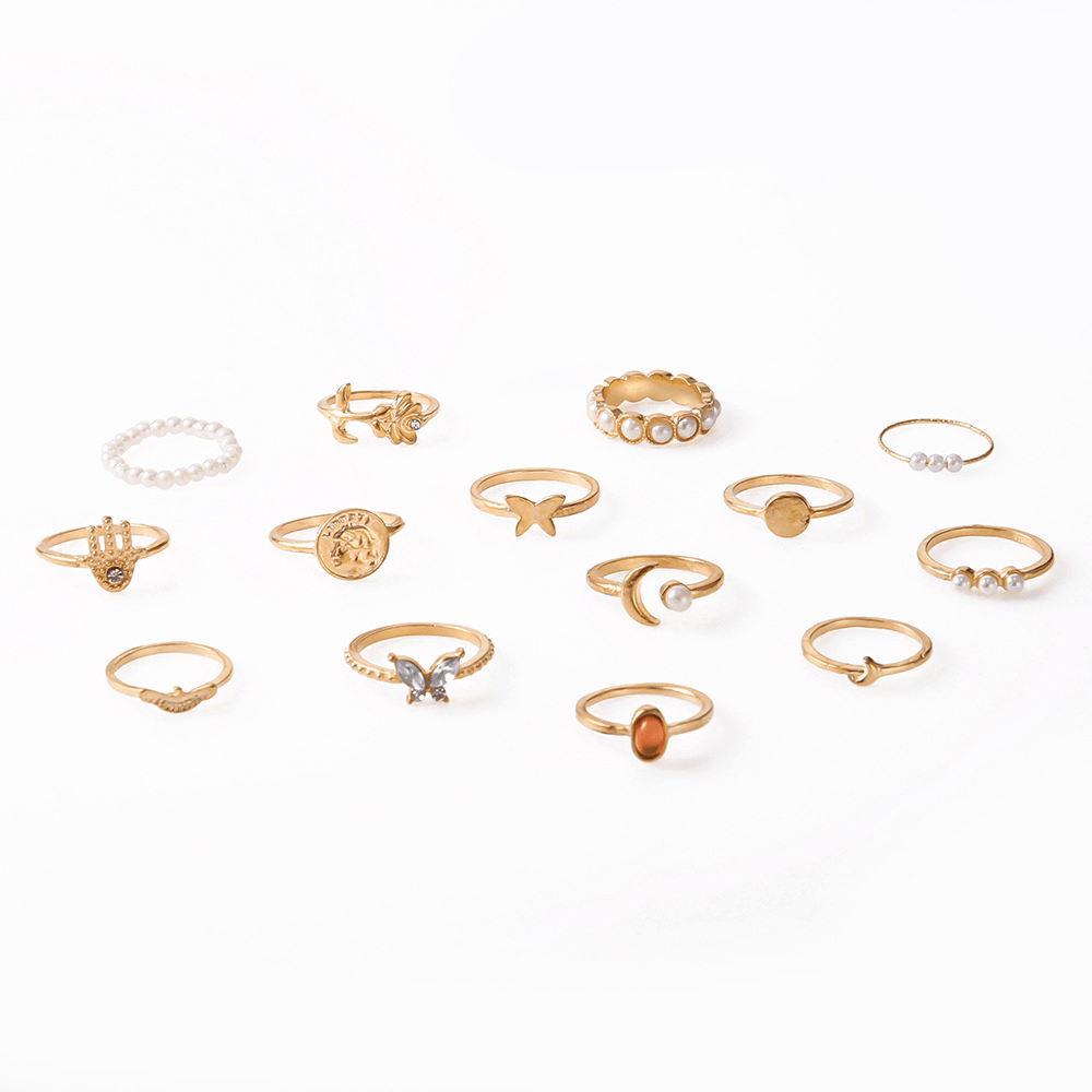 Butterfly Pin Rose Sparkle Diamond Pearl Crescent Fatima Hand Drip Oil 14 Piece Set Jointed Ring