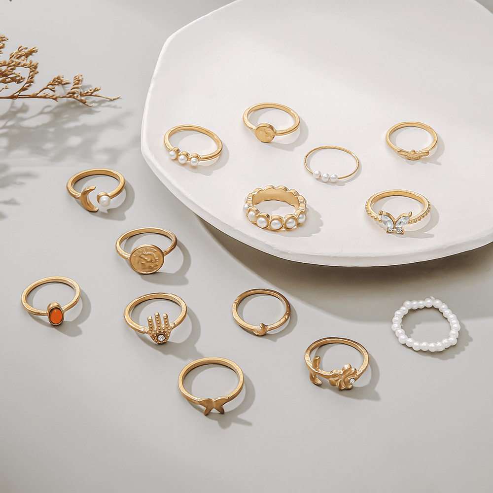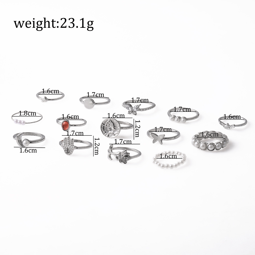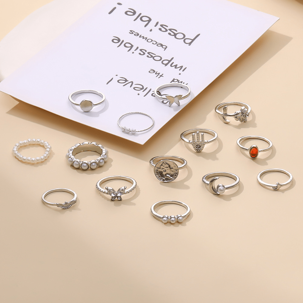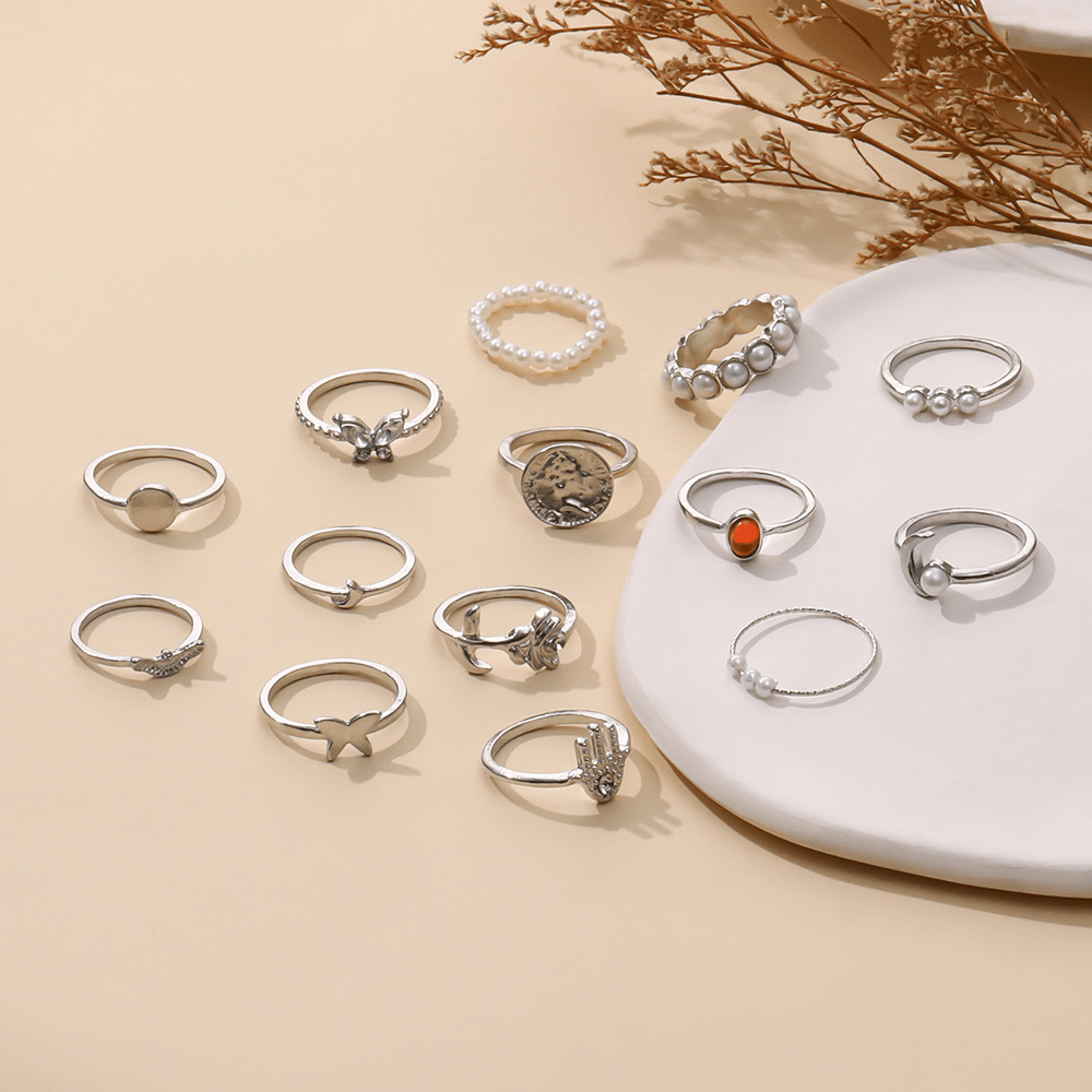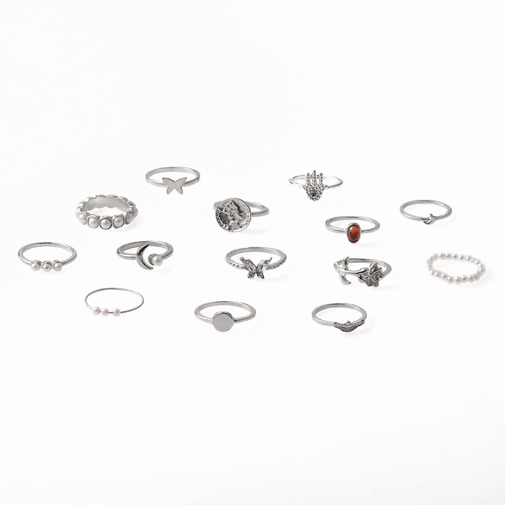 Butterfly Pin Rose Sparkle Diamond Pearl Crescent Fatima Hand Drip Oil 14 Piece Set Jointed Ring