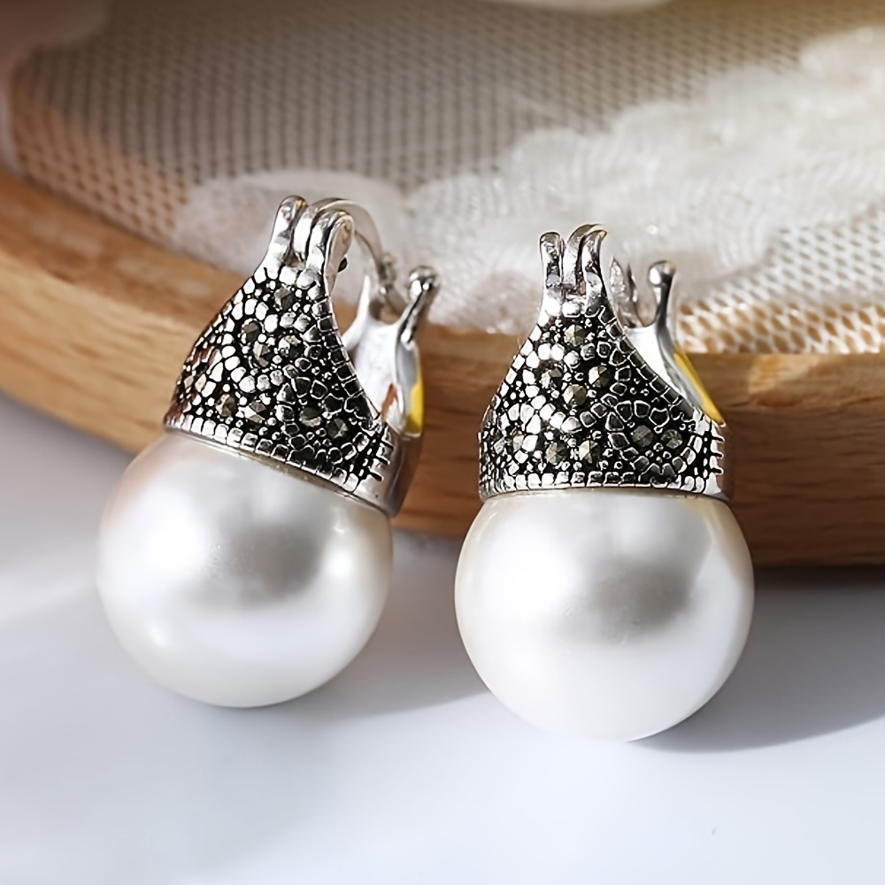 Classical and elegant heart-themed copper earrings with synthetic June birthstone, imitation pearl pendant, nickel-plated no-plating for everyday and party occasions - a pair