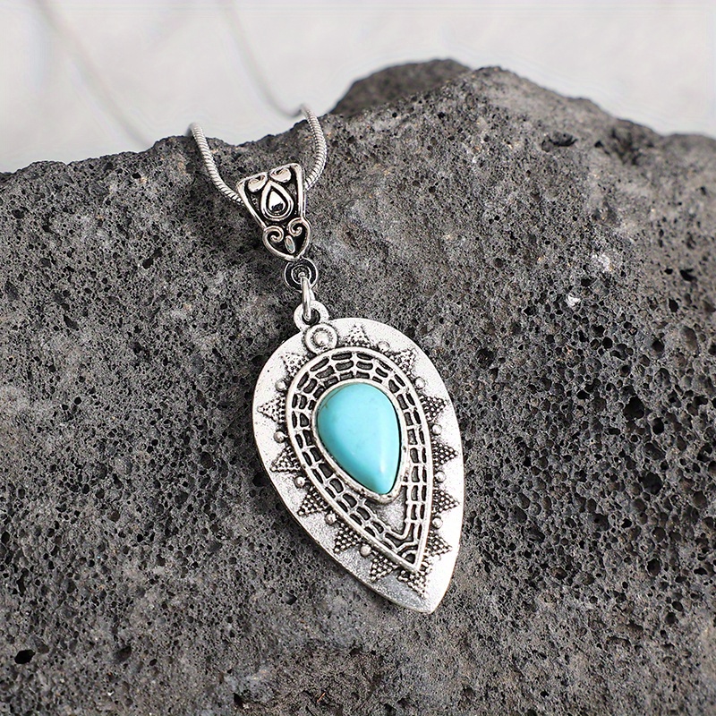 Classical engraved drop-shaped turquoise pendant, bohemian turquoise necklace