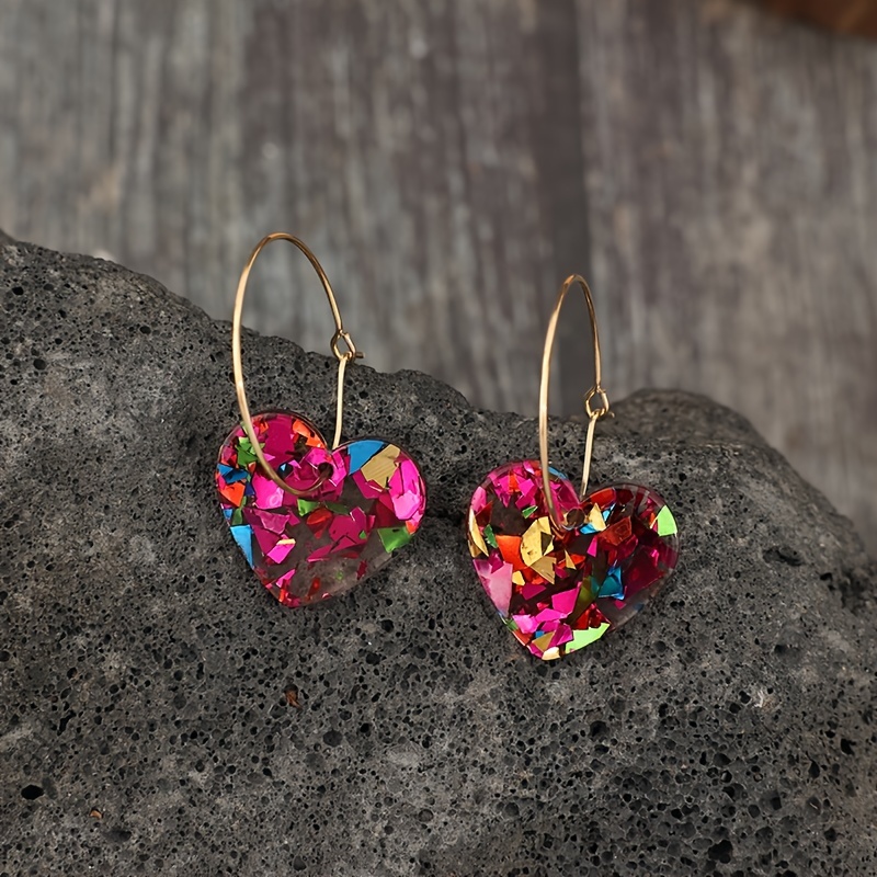 Classical style resin love pendant earrings - no plating, iron earrings, inlay material, preferred for Valentine's Day gifts