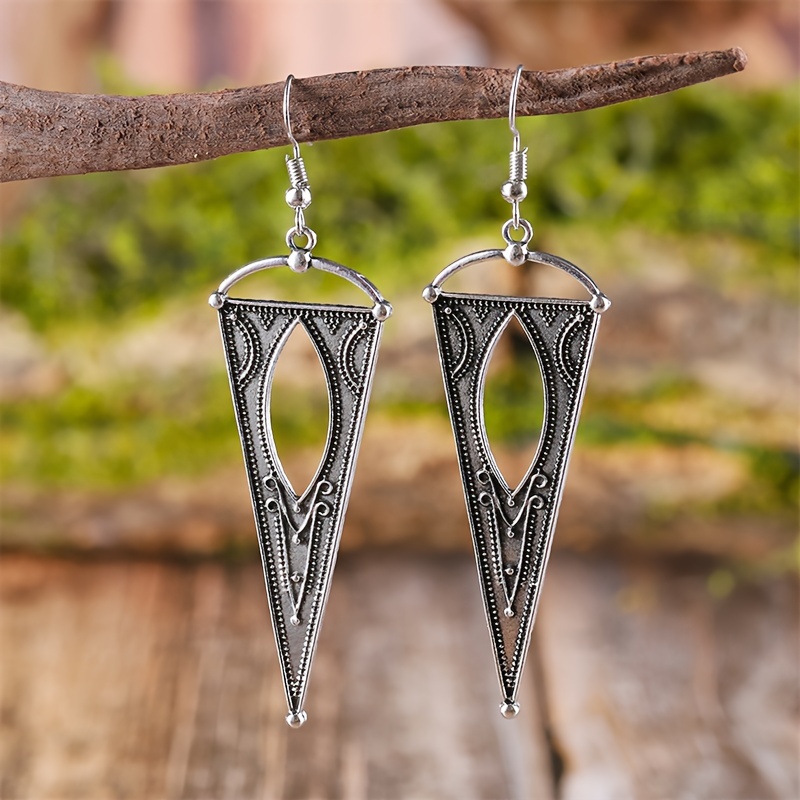 Classical triangular engraved hanging earrings, silver-plated zinc alloy jewelry, exquisite ladies' gifts