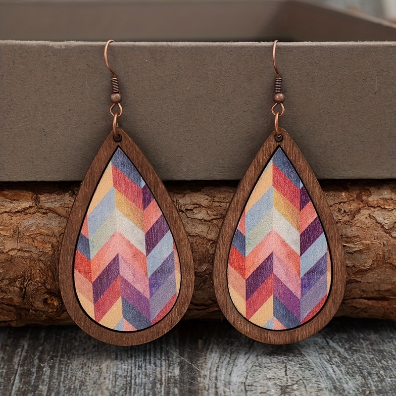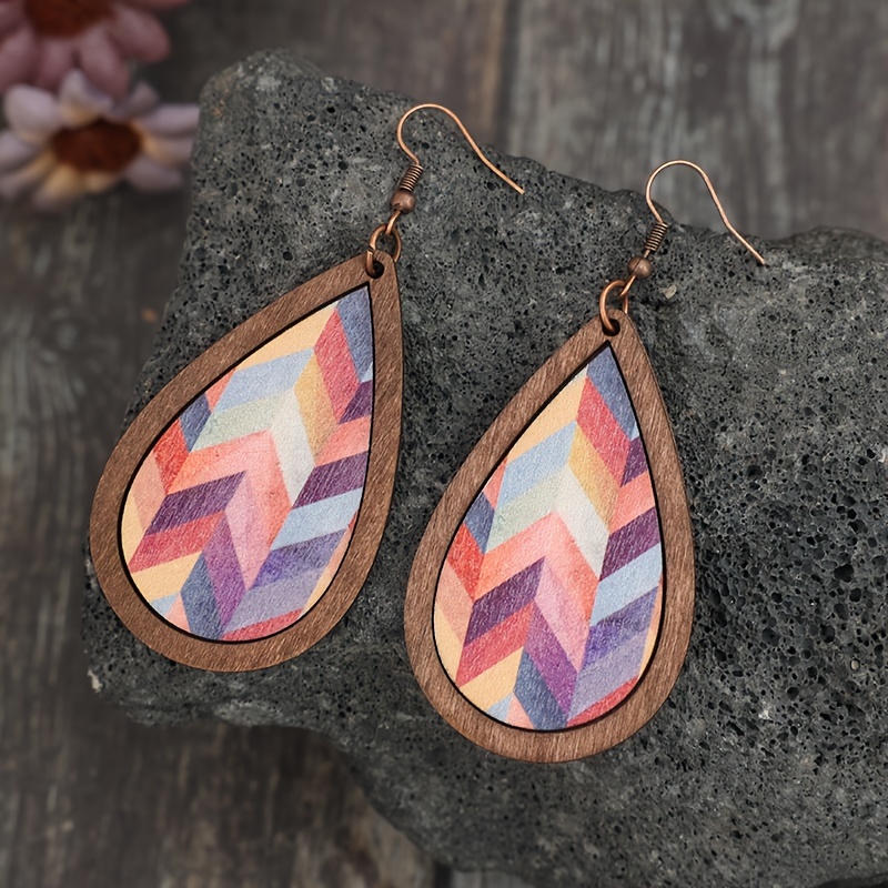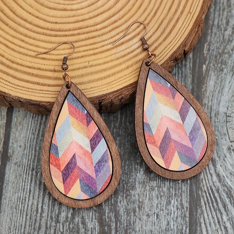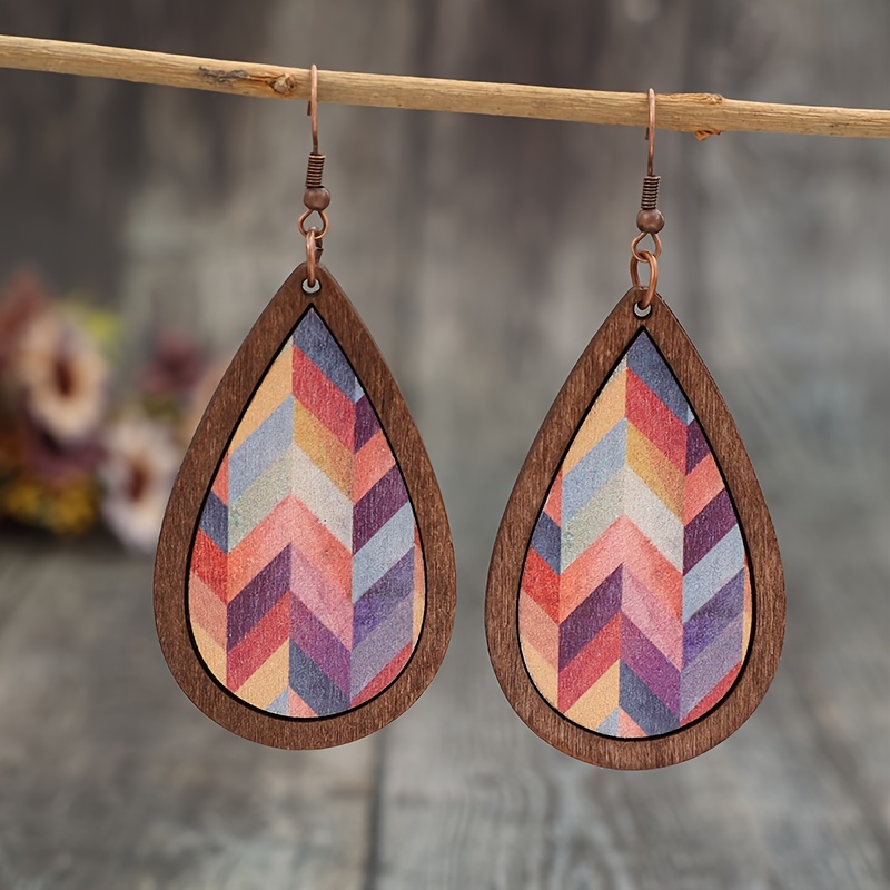 Classical Tribal V-Pattern Drop-Shaped Fungus Ring - No Iron Plated Ear Hooks, Made of Wood, Stylish Everyday Wear Accessories, Suitable for All Seasons