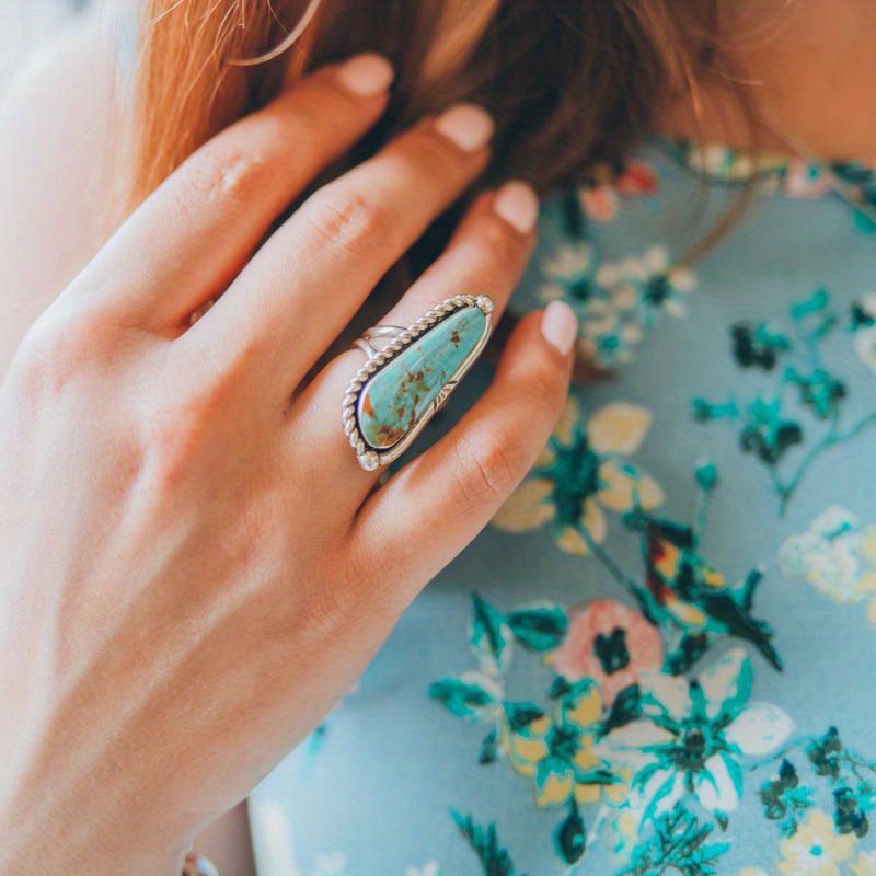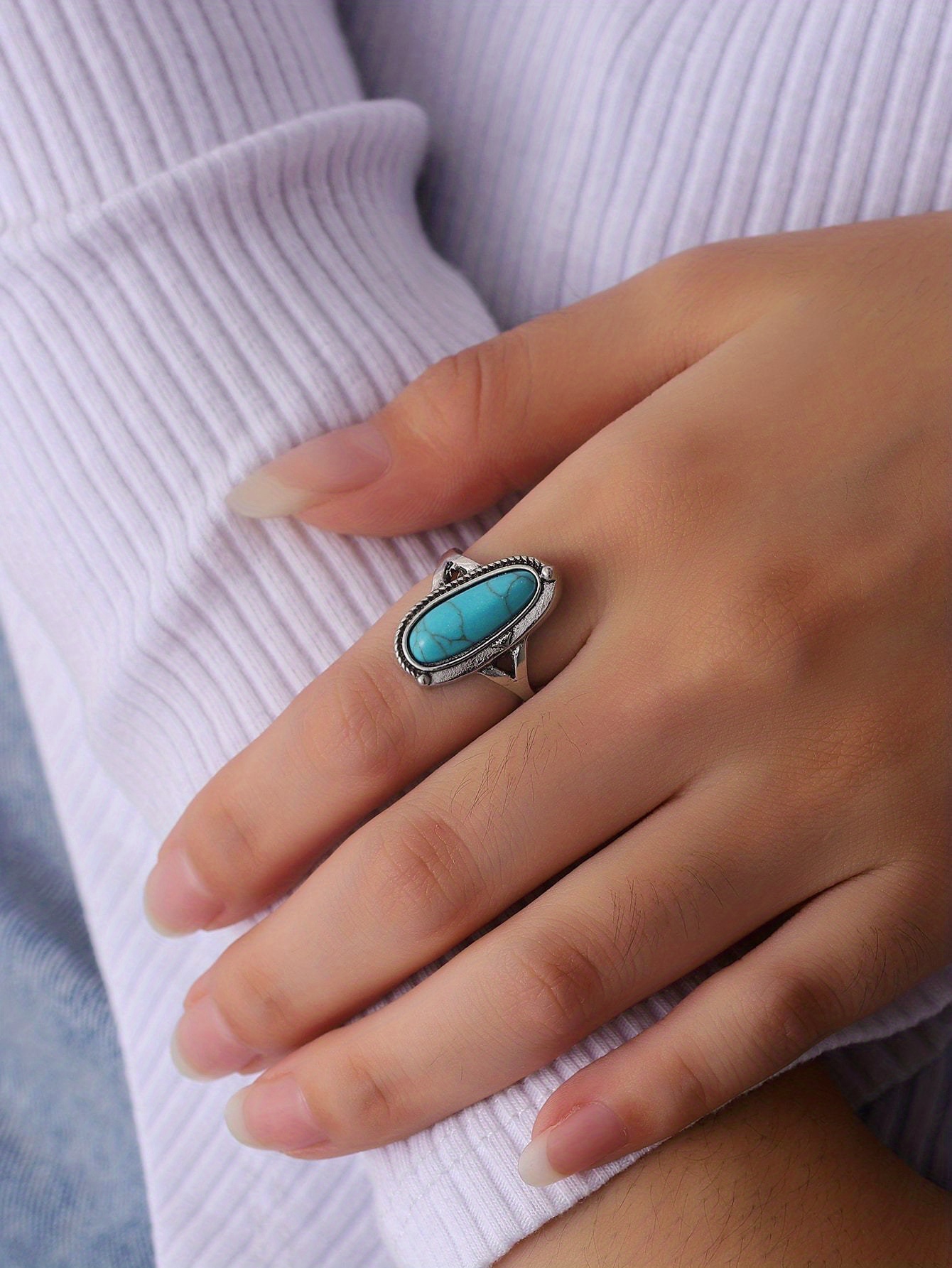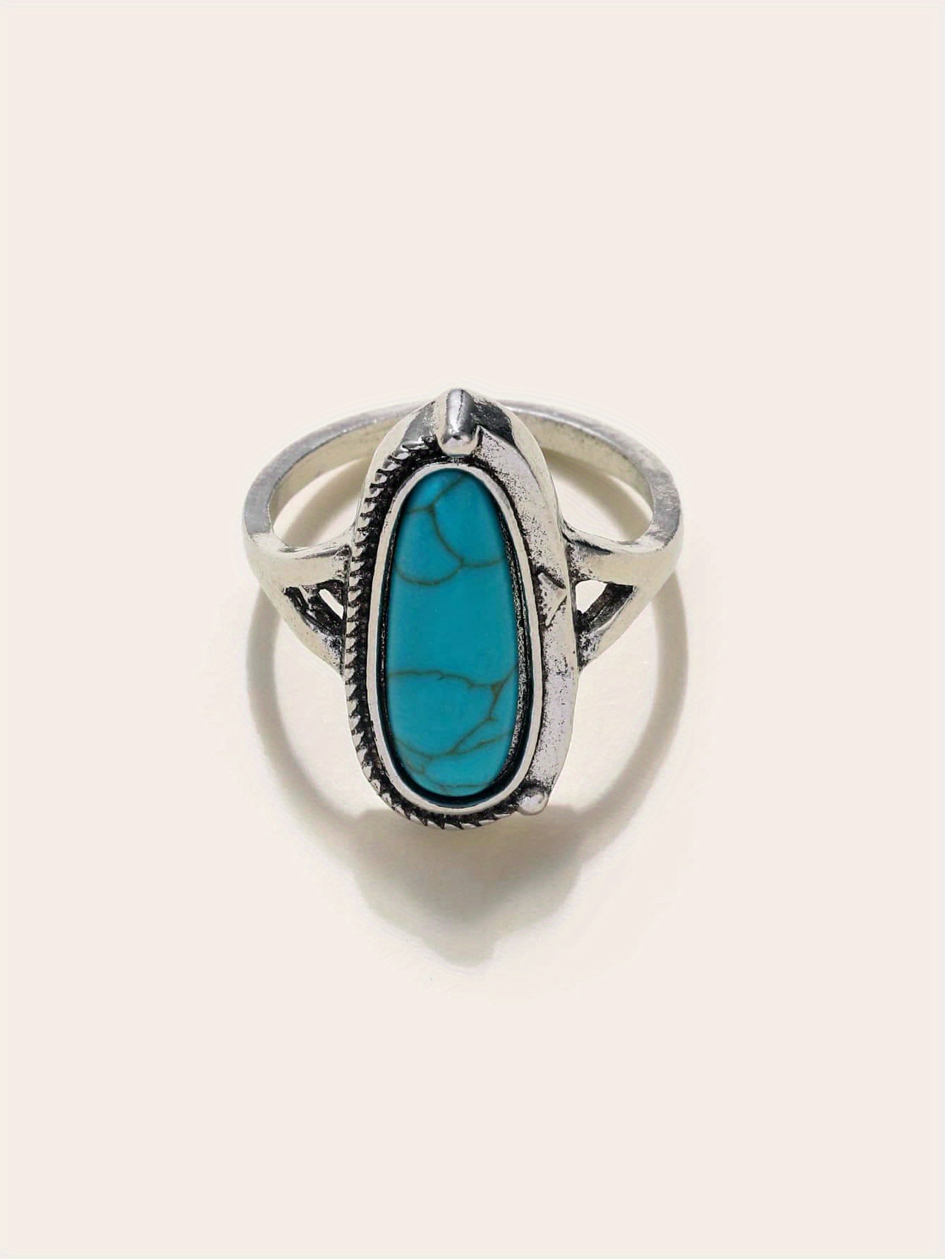 Classical water drop ring set with turquoise, silver-plated zinc alloy evening decoration gift, suitable for women