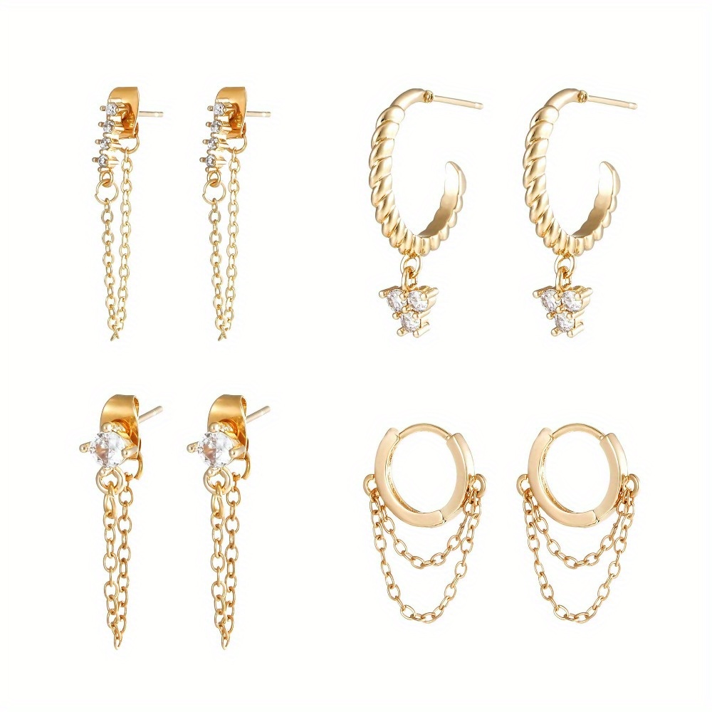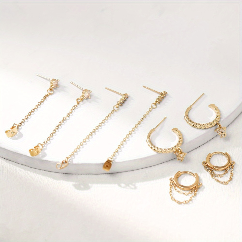 Copper combination earrings fashion versatile personality twist chain pair earrings stud earrings women