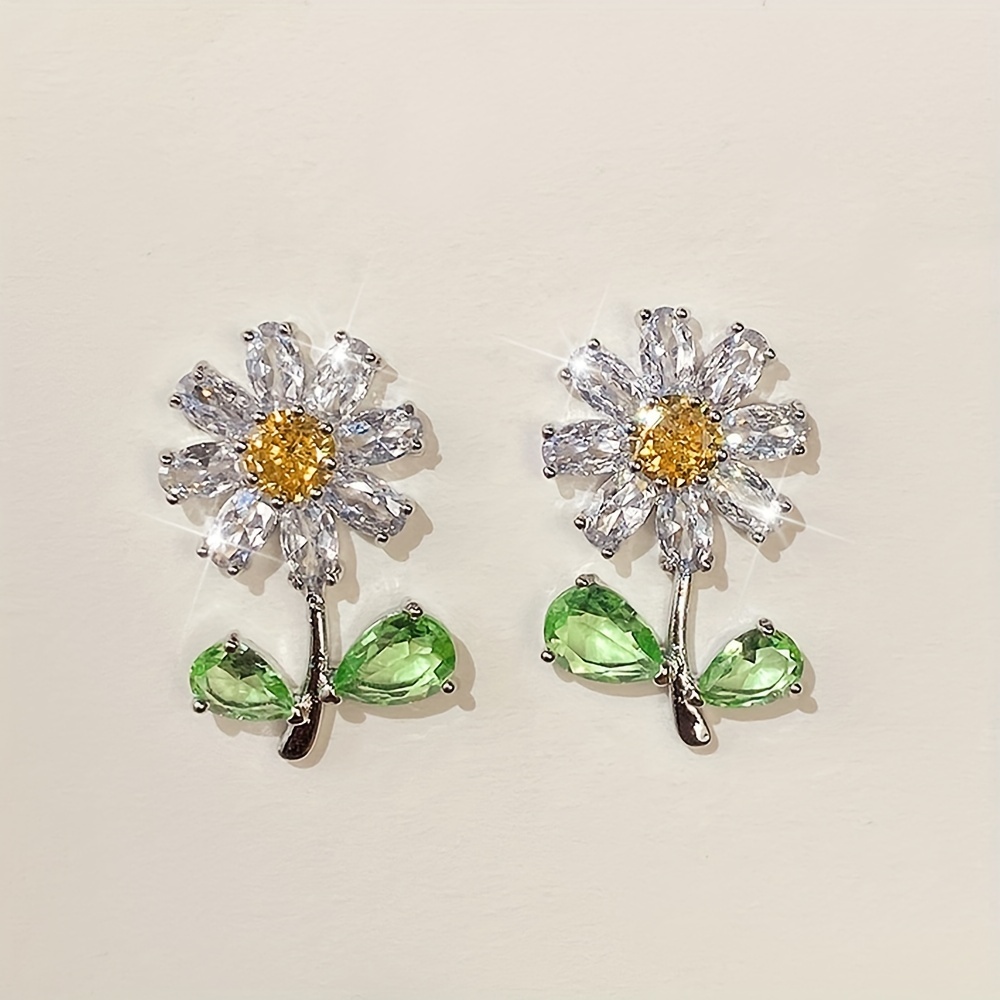 Creative design flower-shaped yellow faux gemstone 925 silver-plated Zirconia stud earrings, ladies birthday party gift jewelry