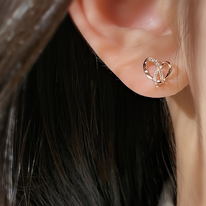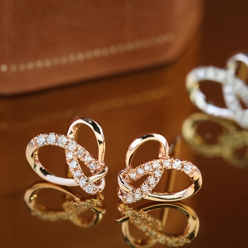 Creative hollow heart stud earrings, shining zircon, elegant casual style, dating gift, suitable for women and women