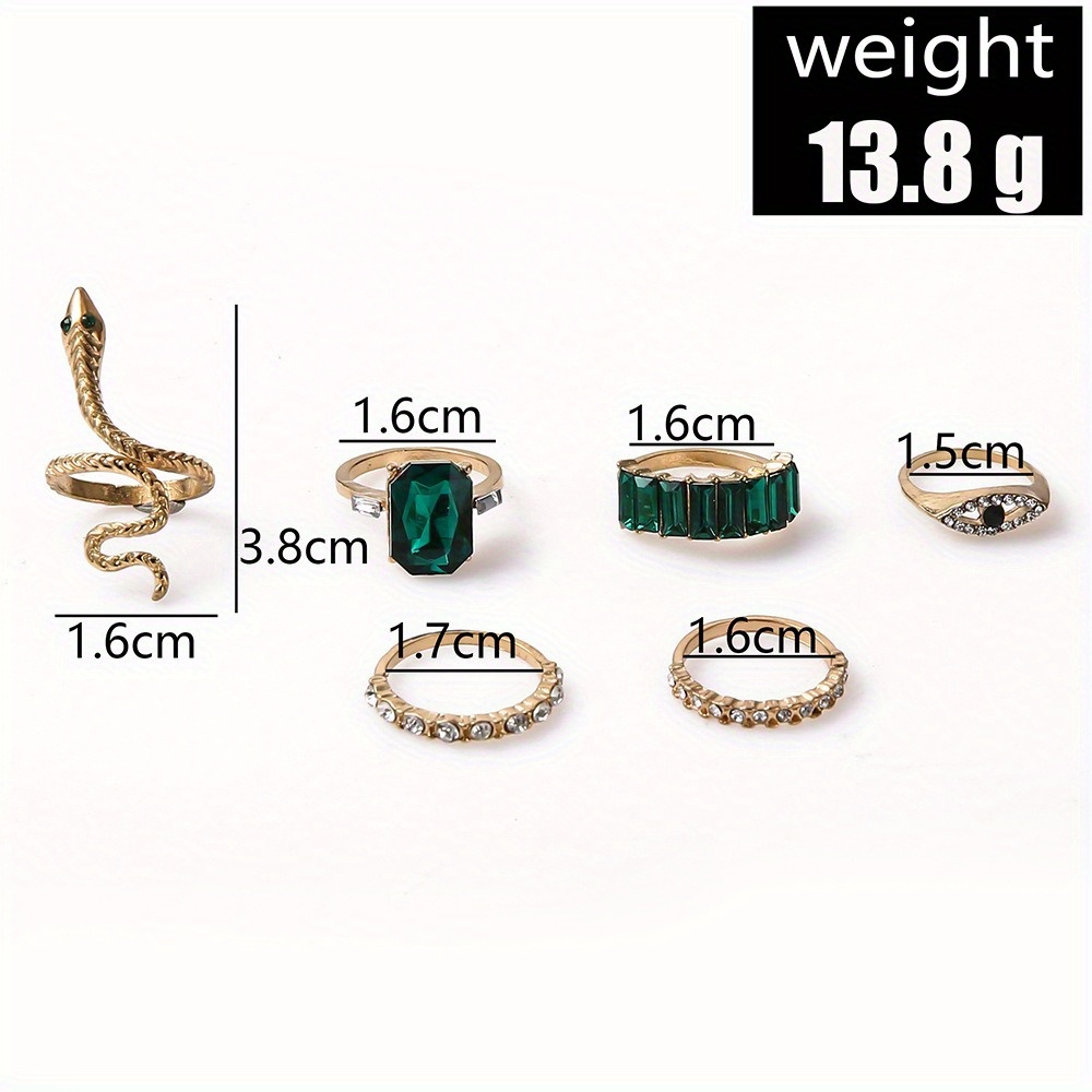 Creative Retro Diamond-set Emerald Serpentine 6-piece Ring, Personalized Joint Ring