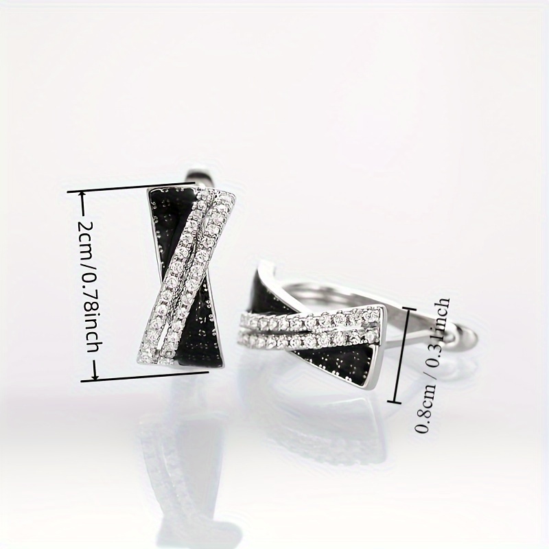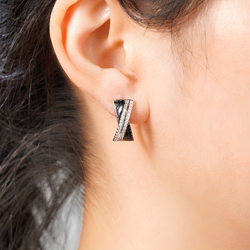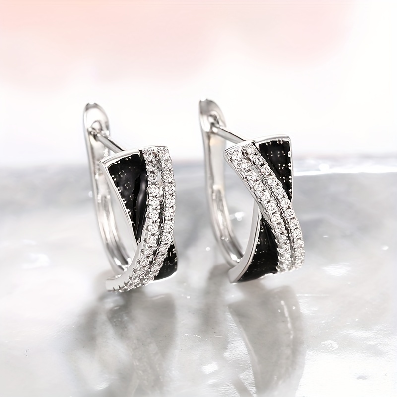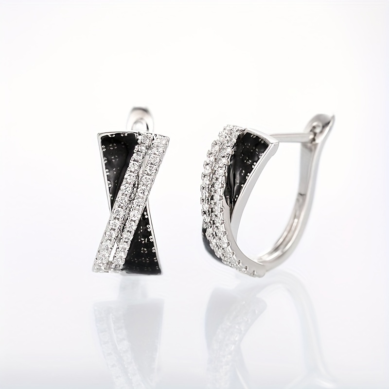 Creative X-shaped loop earrings with white and black Zirconia, elegant and luxurious style, exquisite Women's earrings