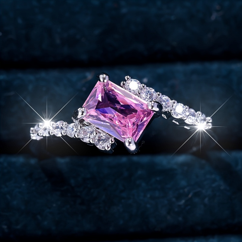 Cute Ladies Pink Square Synthetic Zircon Ring Exquisite Luxury Wedding Jewelry