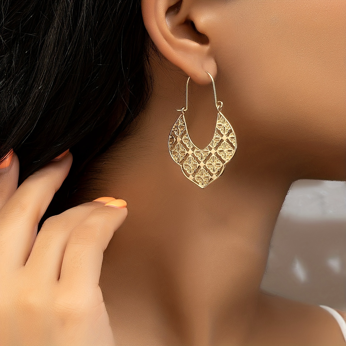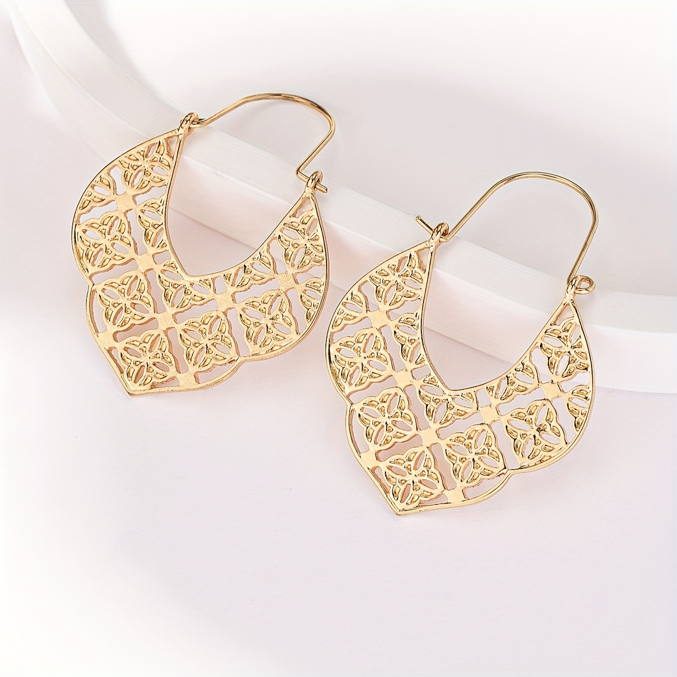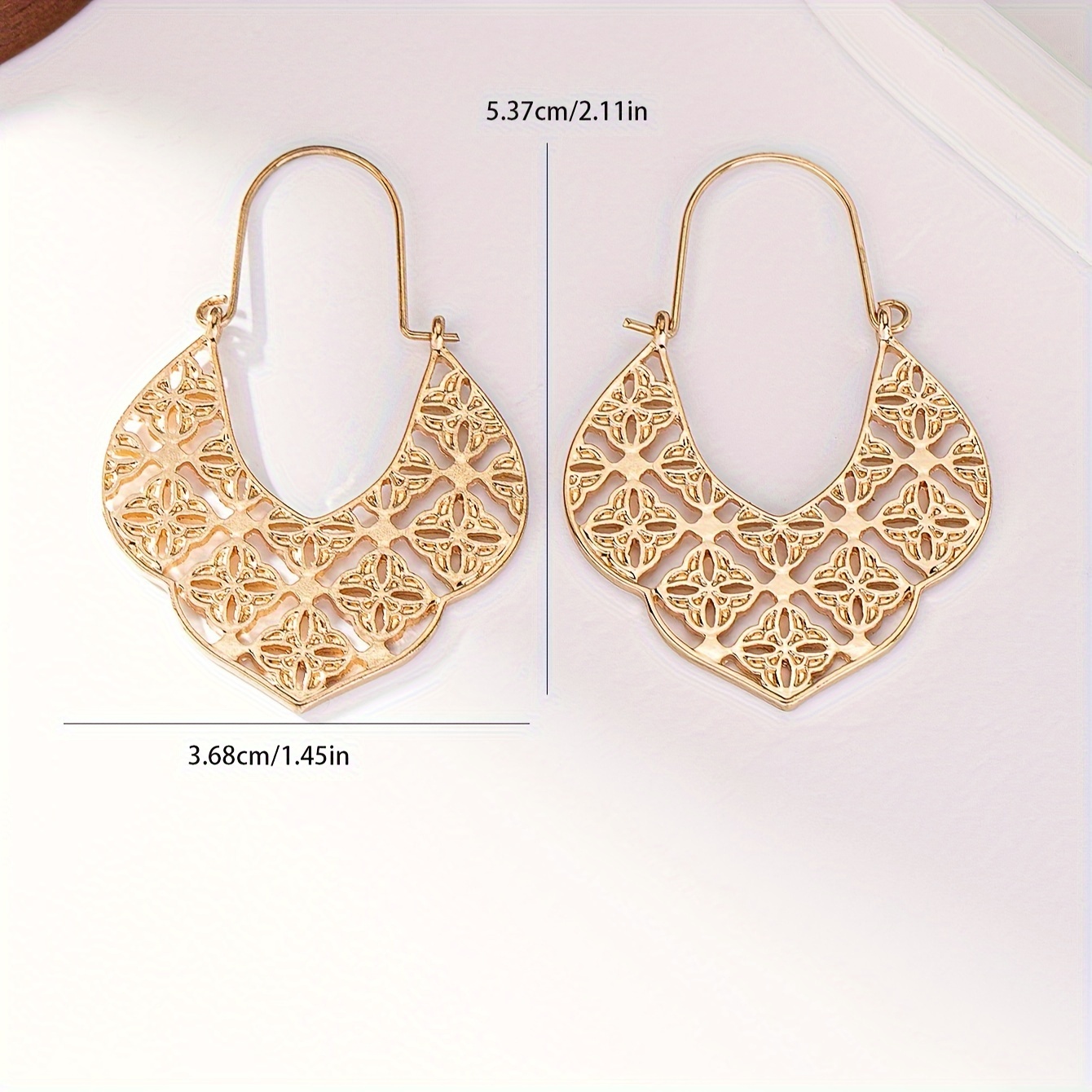Delicate Complicated Pattern Hoop Earrings Vintage Elegant Style Zinc Alloy 14K Gold Plated Hoop Earrings