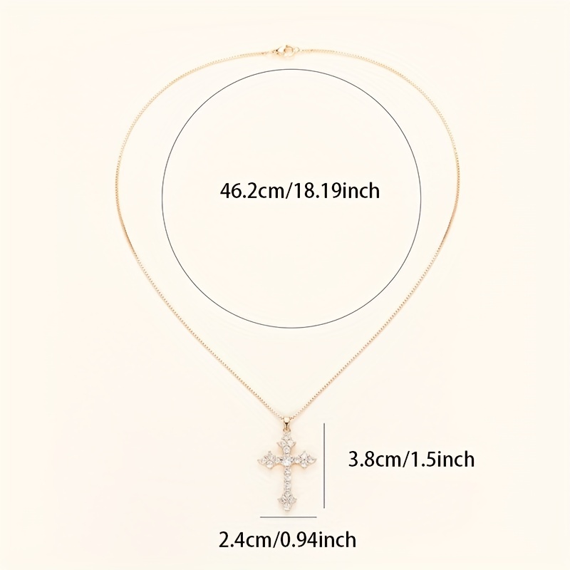 Delicate cross pendant necklace set with round shiny zircon, lucky adjustable collarbone chain