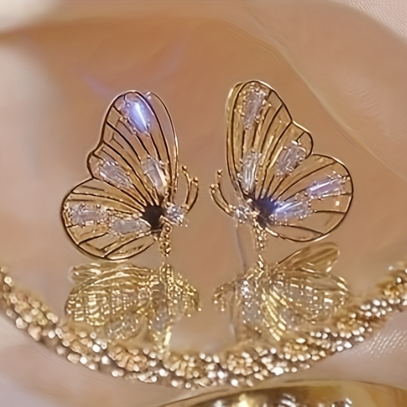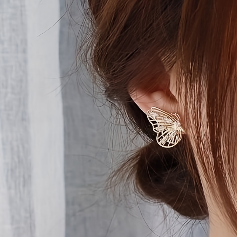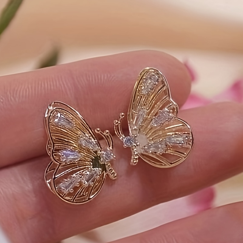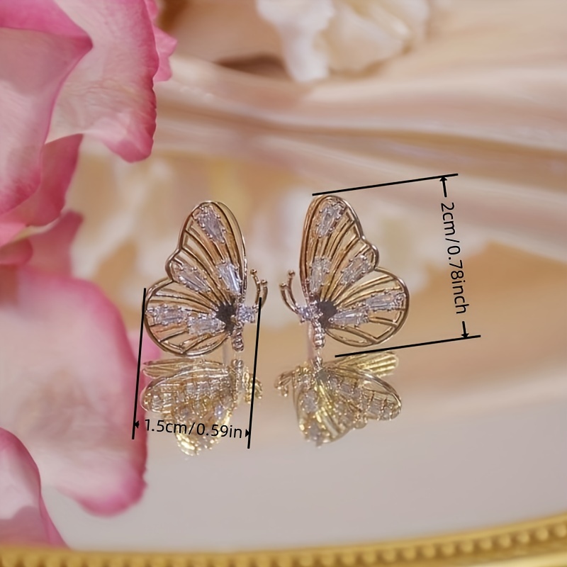 Delicate Hollow Butterfly Shaped Stud Earrings 18K Gold Plated zirconia Inlaid Elegant Cute Style Party Ear Decor Adorable Gifts