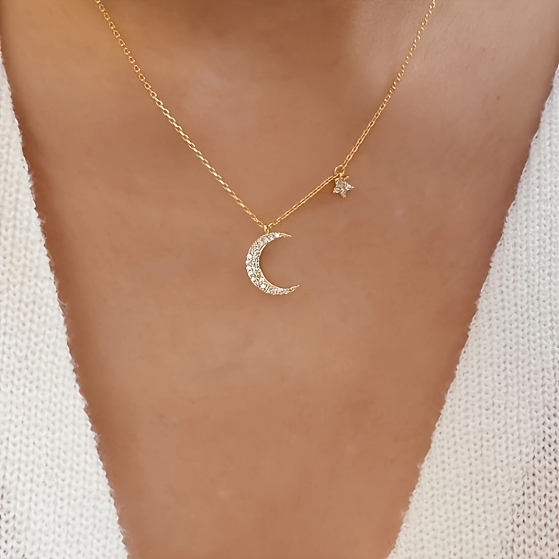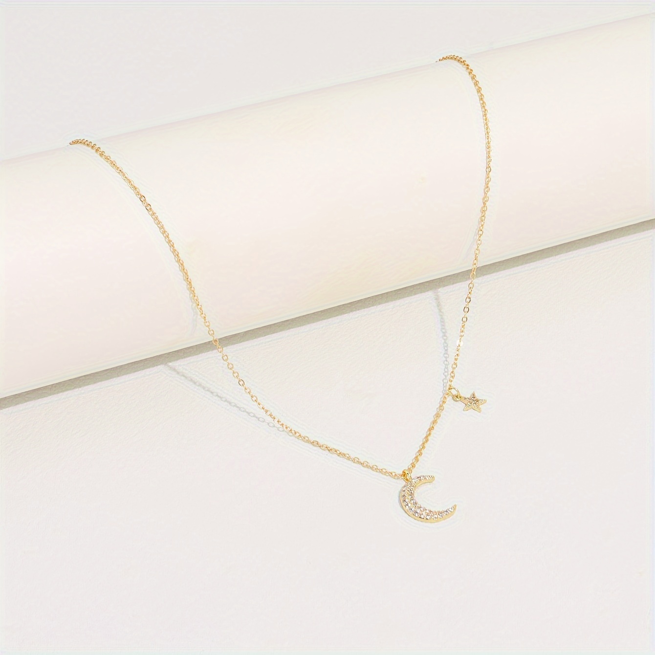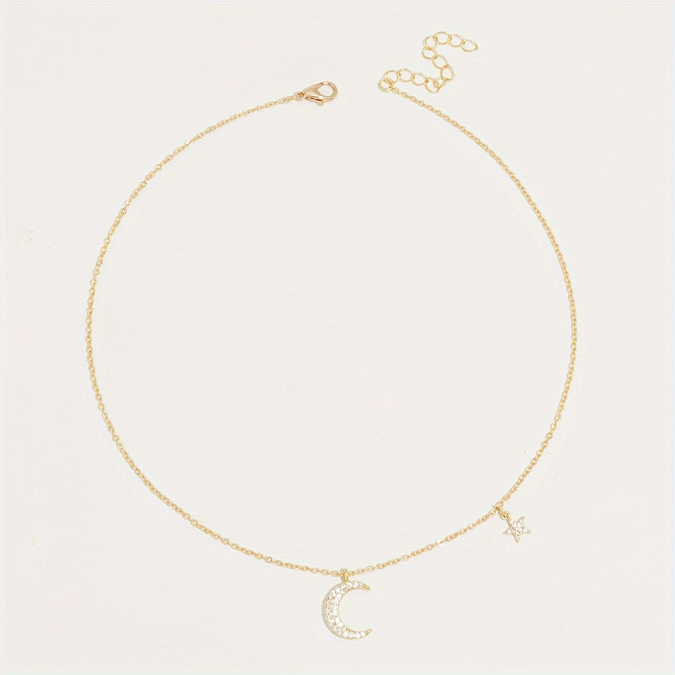 Delicate Zirconia Star Moon Pendant Collarbone Chain Women's Necklace Birthday Party Gift for Eid al-Fitr, Ramadan