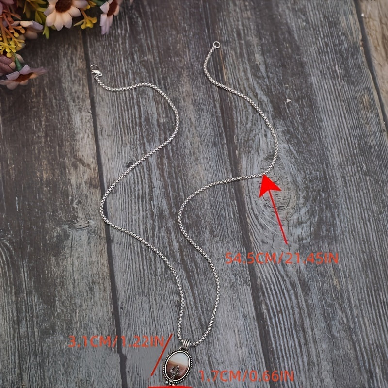 Desert Cactus Decorative Oval Pendant Necklace Western Resin Pendant Necklace Casual Accessories