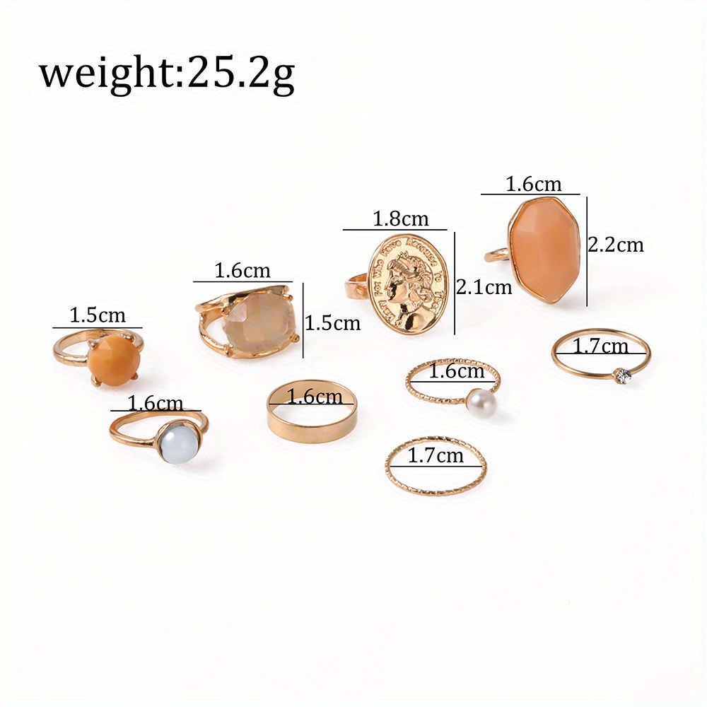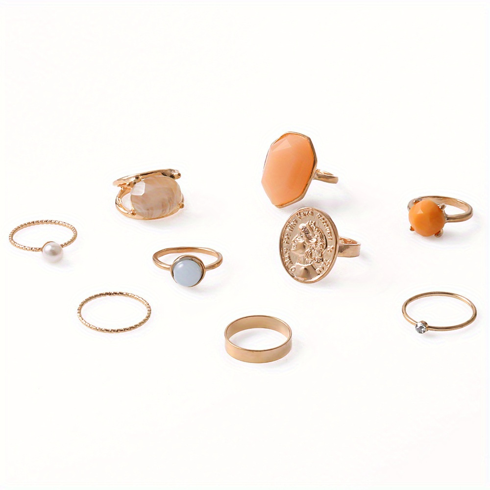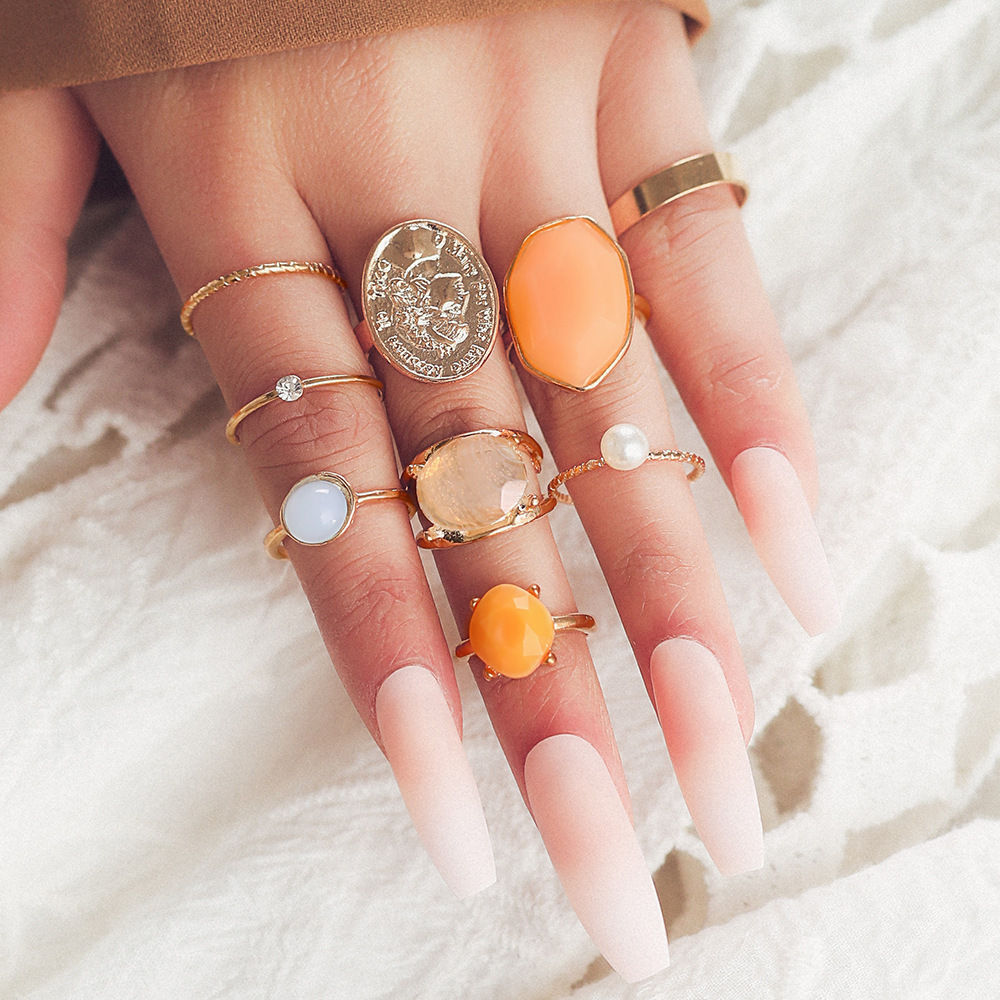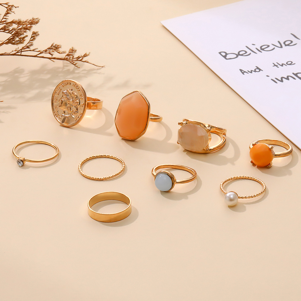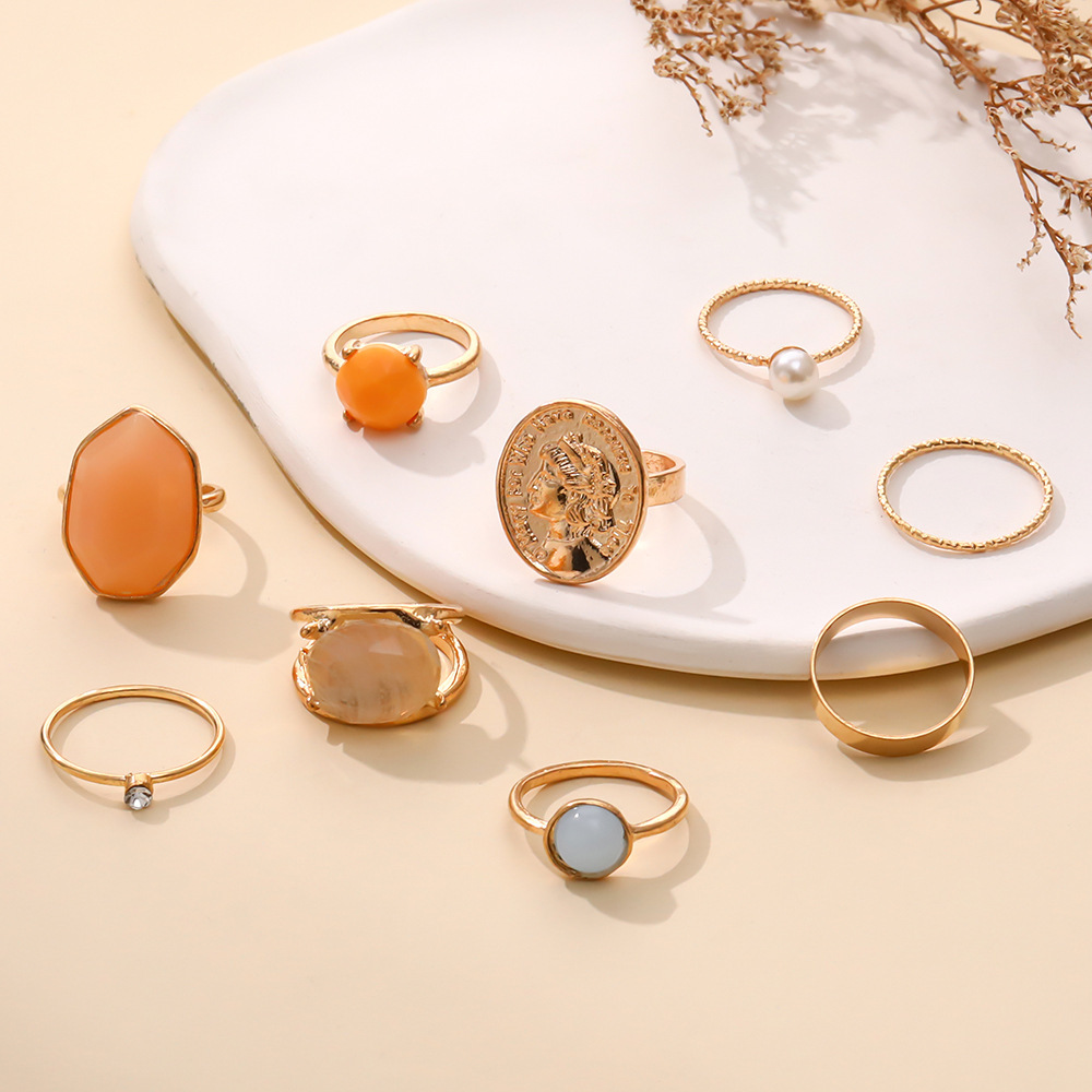 Diamond embossed portrait ring set 9-piece set, creative cold Baroque retro jelly ring for women
