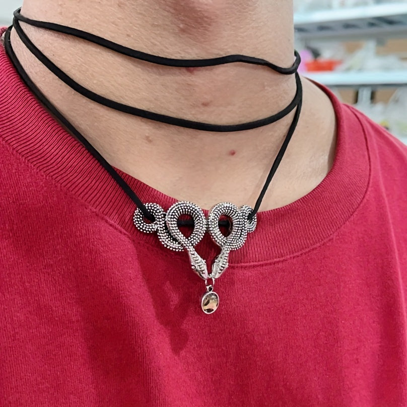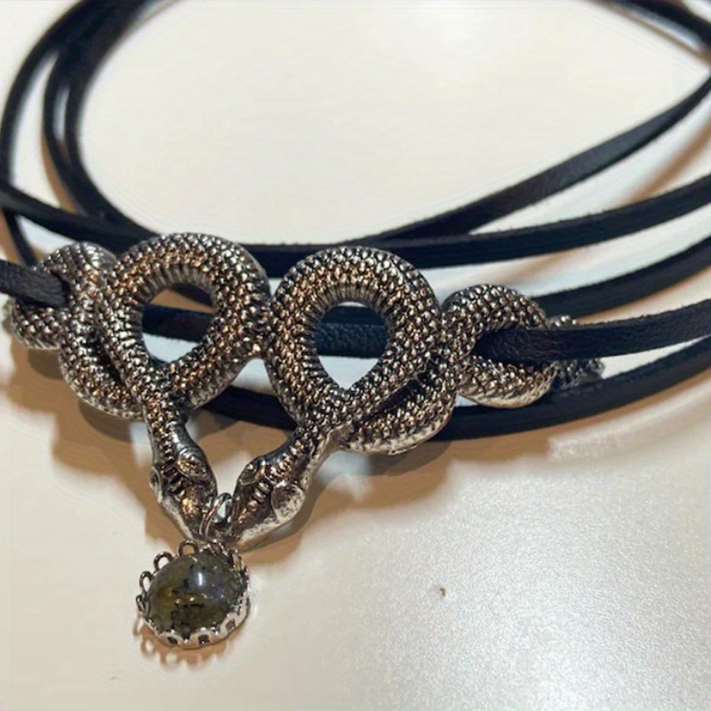 Double Snake Moonstone Necklace Short Velvet with Clavicle Chain