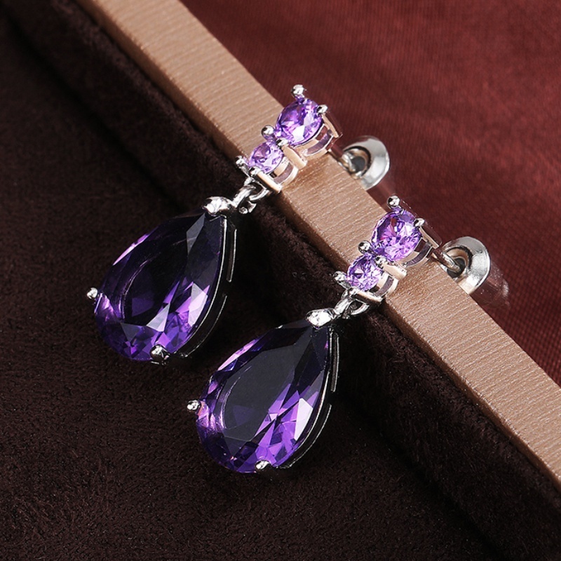 Droplet earrings with cubic zirconia, stud drop earrings, wedding jewelry, gemstones, suitable for women