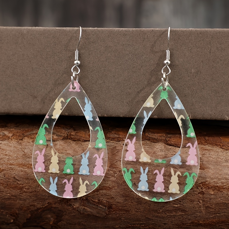 Easter Bunny Charm Acrylic Earrings - Cute Hollow Water Drop Design, Stylish Mixed Color Ladies Pendant Accessories, Paired, Hollow