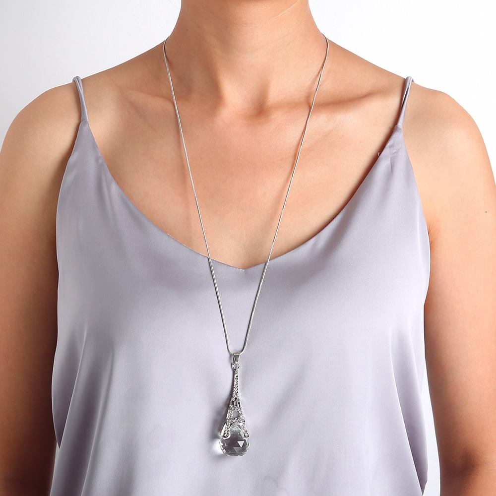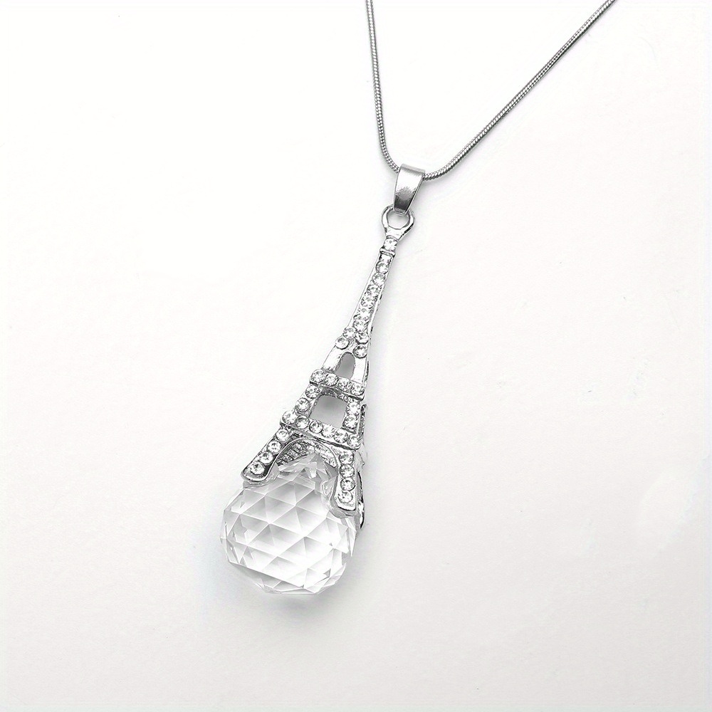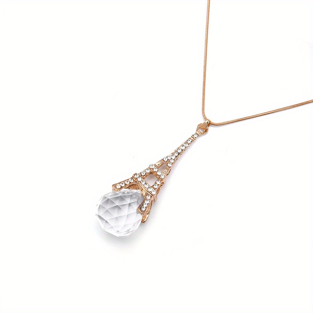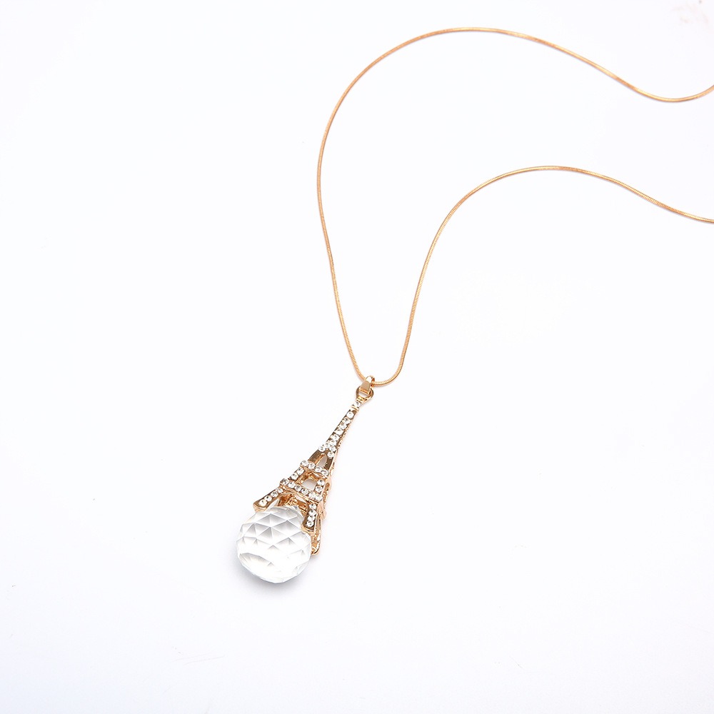 Eiffel Tower Crystal Pendant Sweater Necklace, Long Versatile Clothes Accessories Sweater Chain