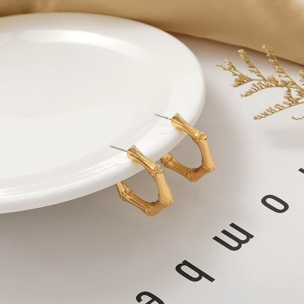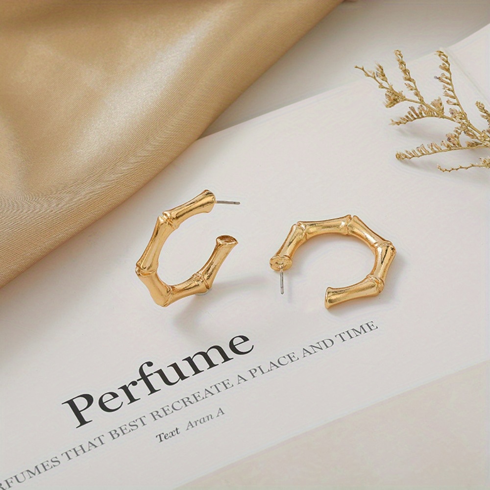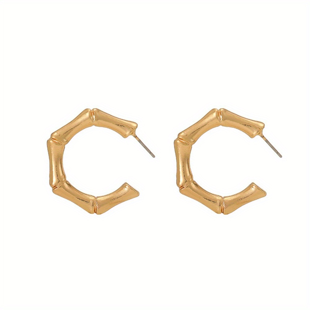 Electroplated Kc Gold Bamboo Geometry C-type Stud Earrings Trend Exaggerated Personality Earrings Women