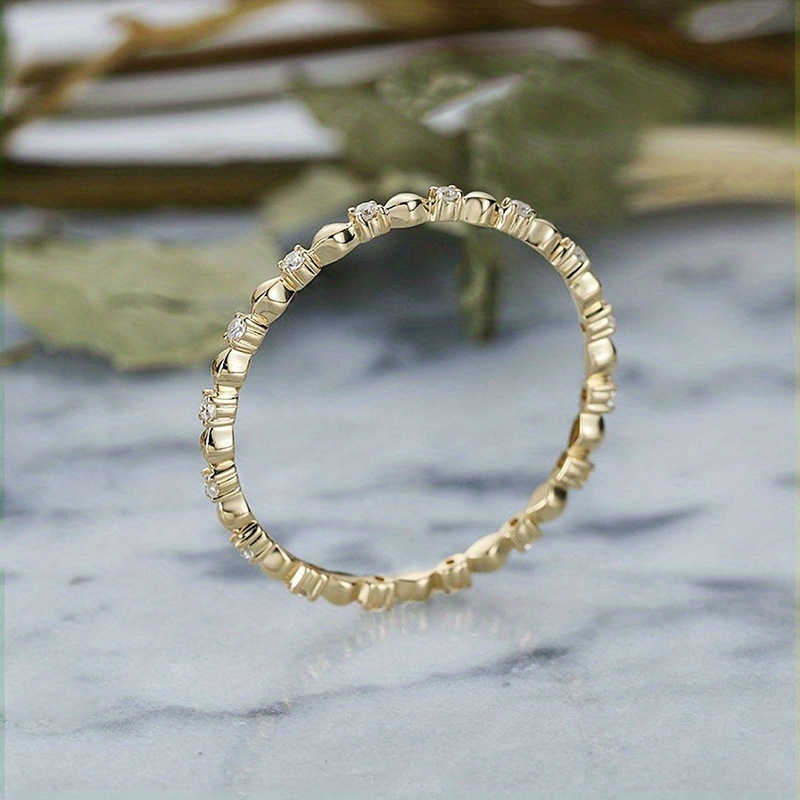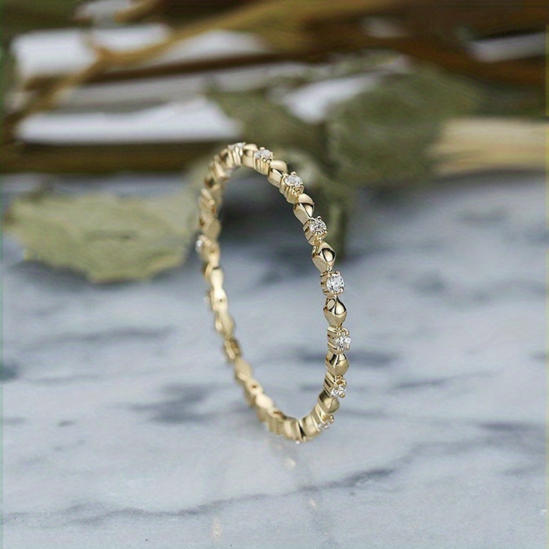 Elegant 18K gold copper-plated ring with synthetic zircon, April birthday gemstones, minimalist micro-dot setting design, everyday and gift jewelry, suitable for women, Valentine's Day, compatible with all seasons