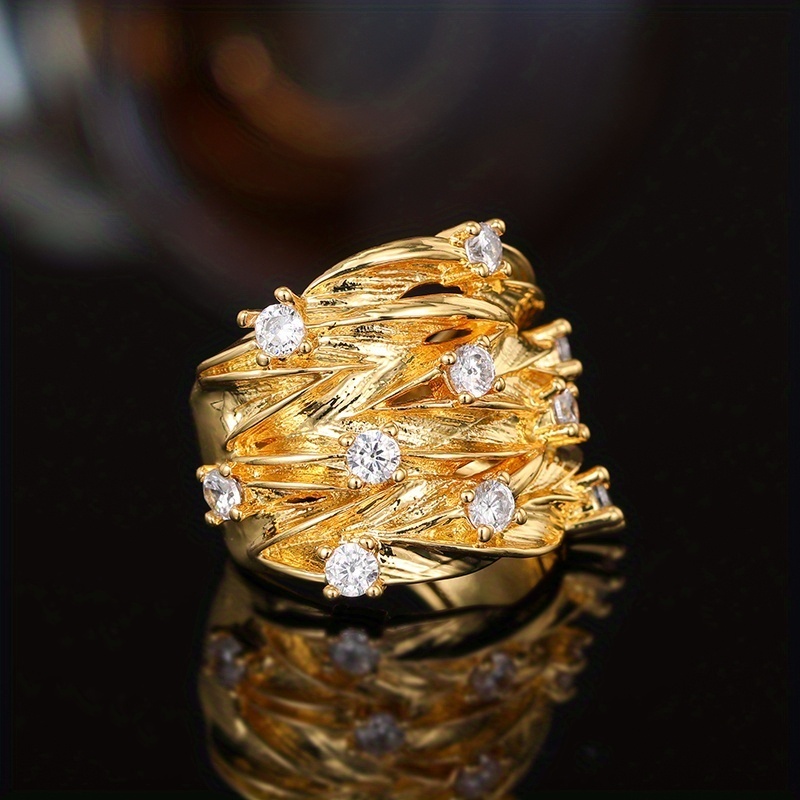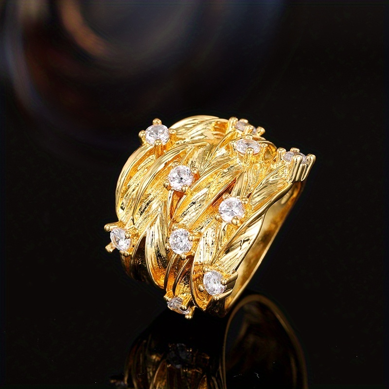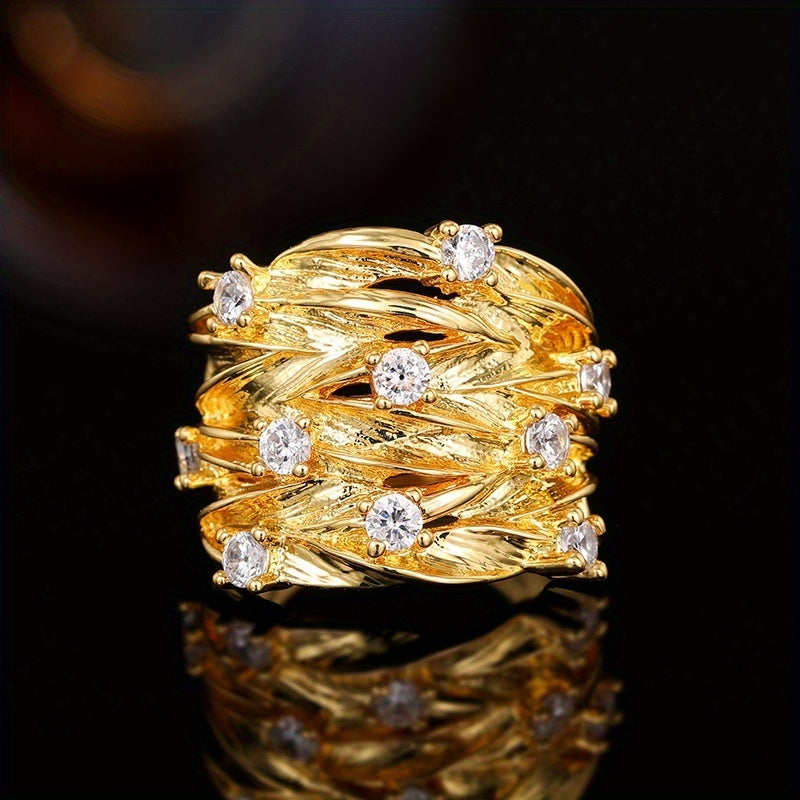 Elegant 18K gold-plated multi-layered interwoven ring with sparkling zirconia - Ladies Luxury Broadband Design, Perfect for Engagement, Wedding and Party Declaration Jewelry, Wedding Bands | Elegant Ladies Rings | Copper Bottom Rings