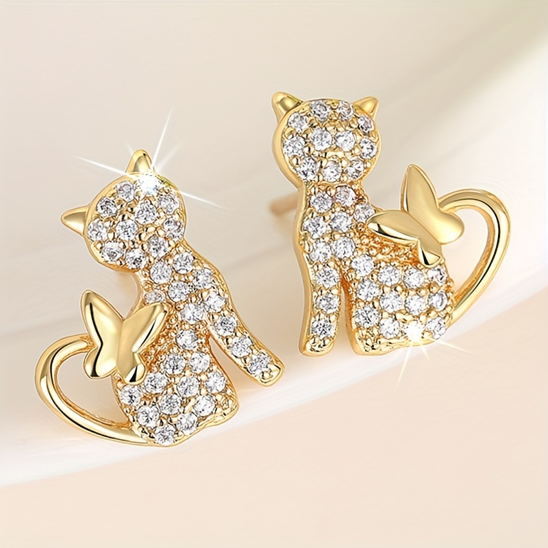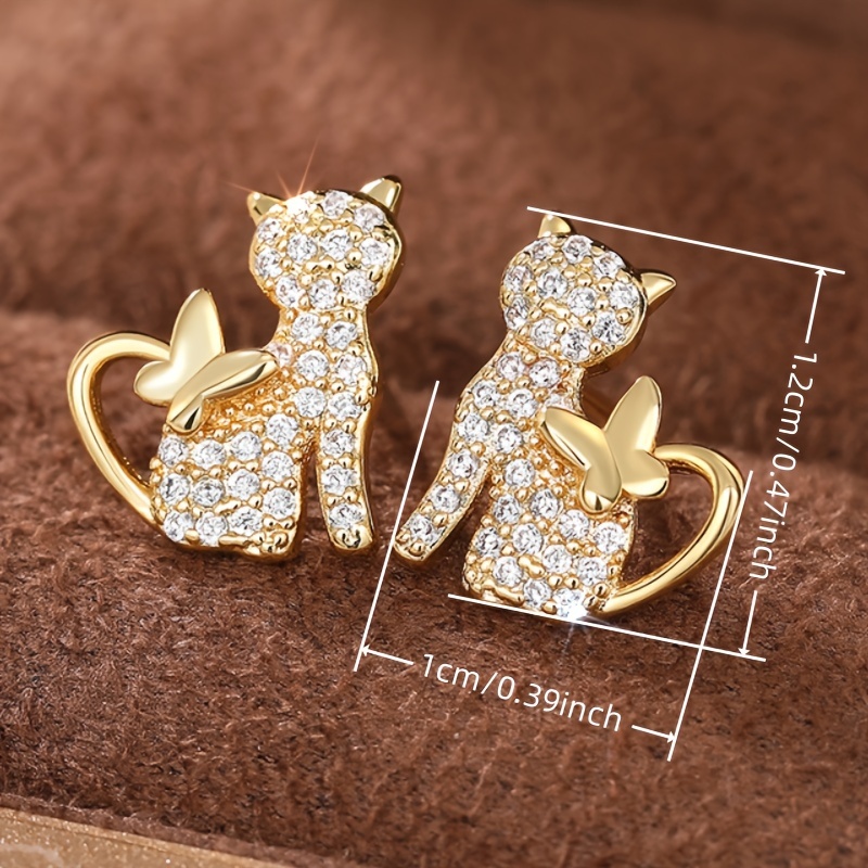 Elegant and cute animal-themed cat stud earrings with synthetic birthstone zirconia, suitable for women, April birthstone, copper-nickel plating free, daily and party jewelry gifts (1 pair)