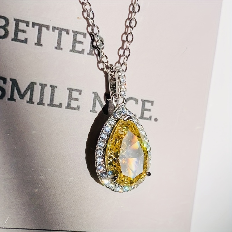 Elegant and luxurious yellow synthetic gemstone teardrop pendant necklace - perfect for engagements, weddings, anniversaries and everyday glamour