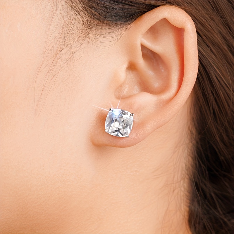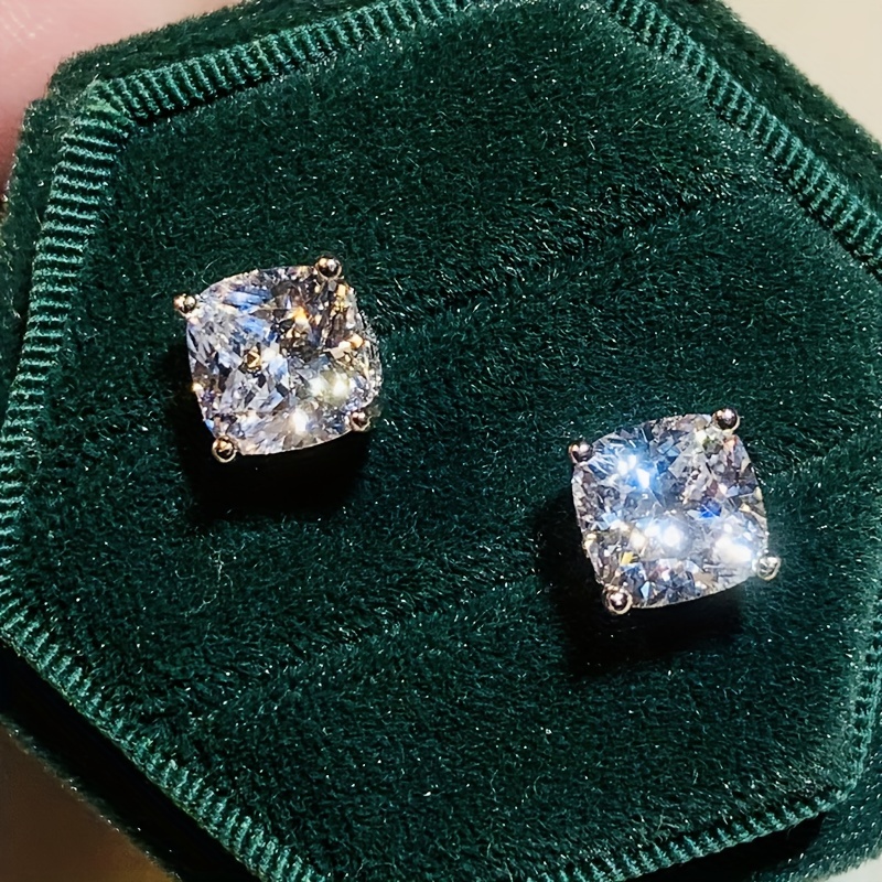 Elegant and simple style synthetic Zirconia stud earrings, suitable for women, April birthstone, copper bottom nickel plating, fashionable daily and holiday wear, Valentine's Day gift, suitable for all seasons
