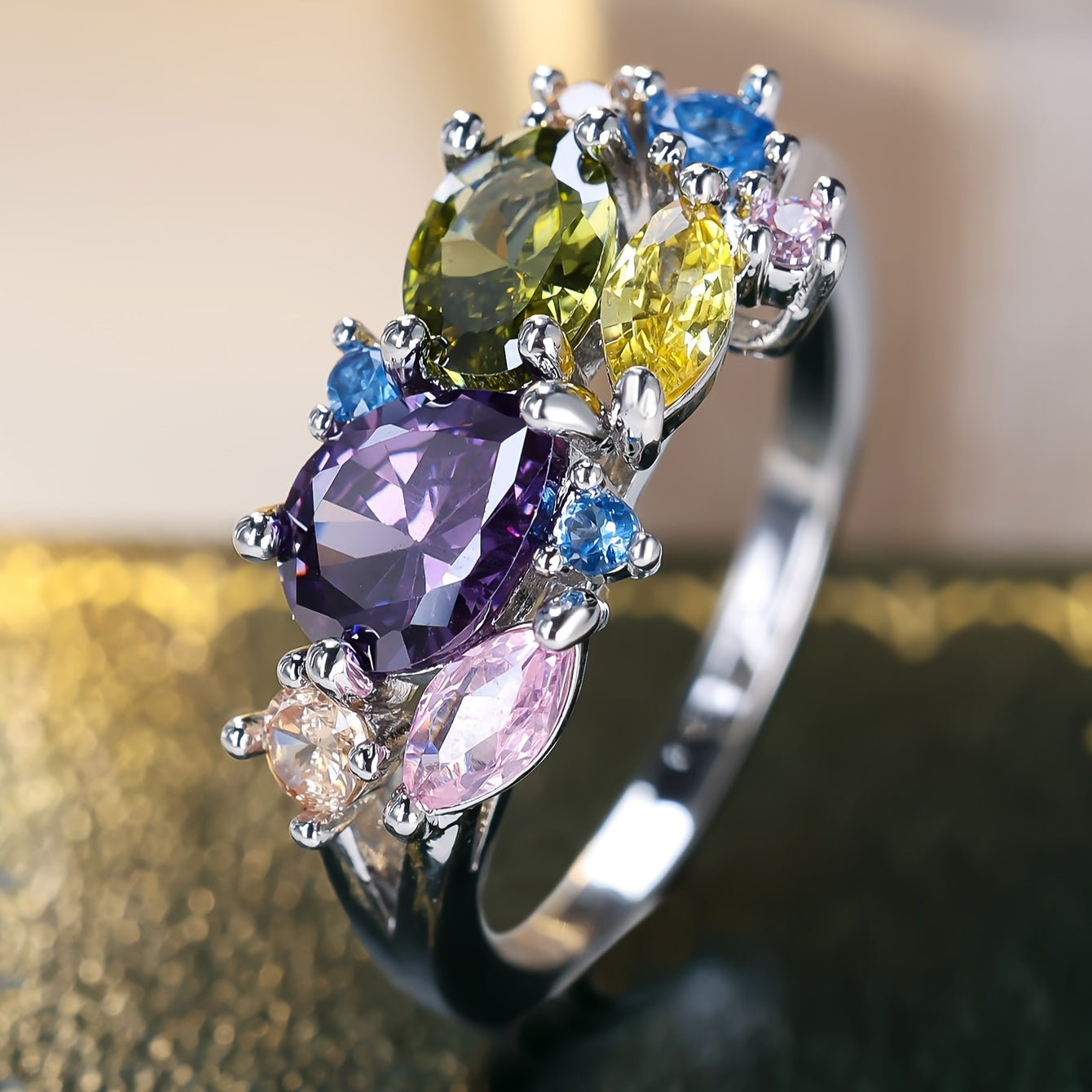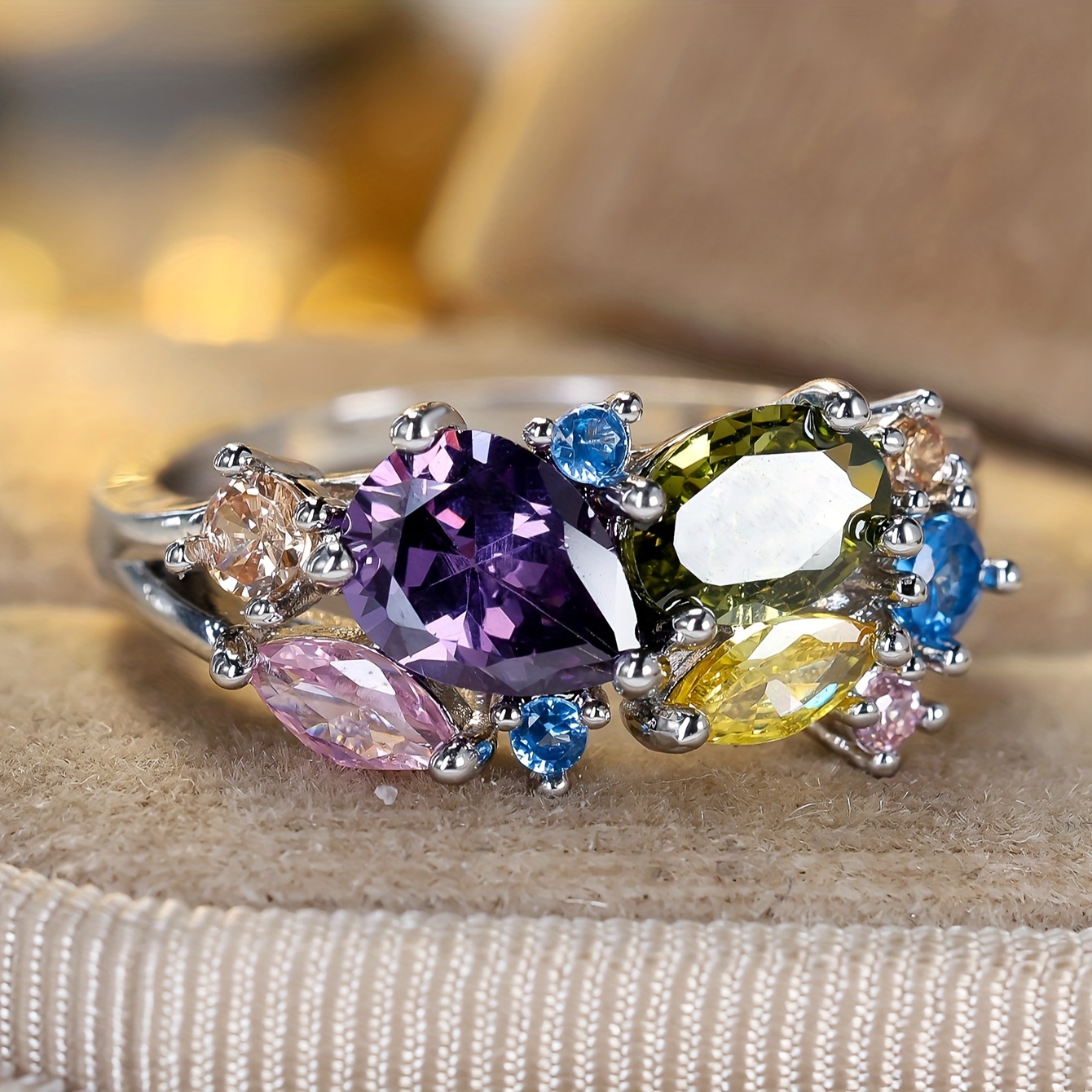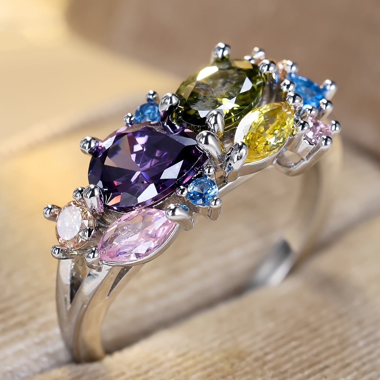 Elegant Bohemian style women's engagement ring, 1 piece, unplated, synthetic cubic zirconia, copper bottom, perfect for weddings and banquets, worn year round.