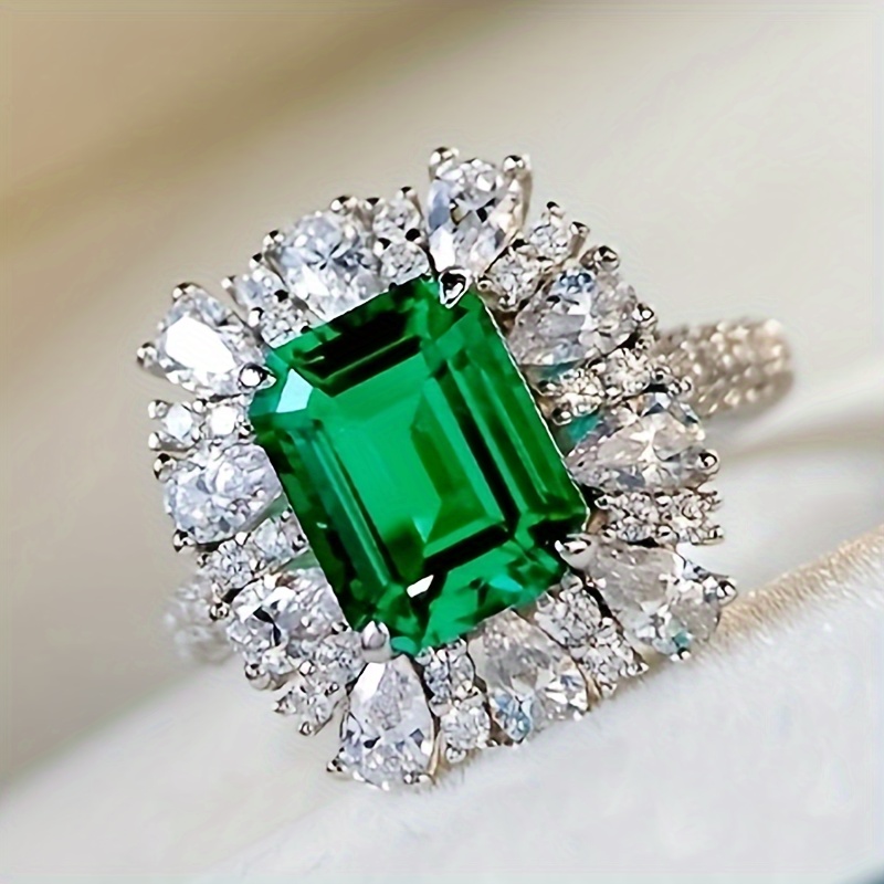Elegant commitment ring, noble sunflower design, set with crystal stone, rectangular shape, suitable for engagement/wedding rings, luxury jewelry imitation.
